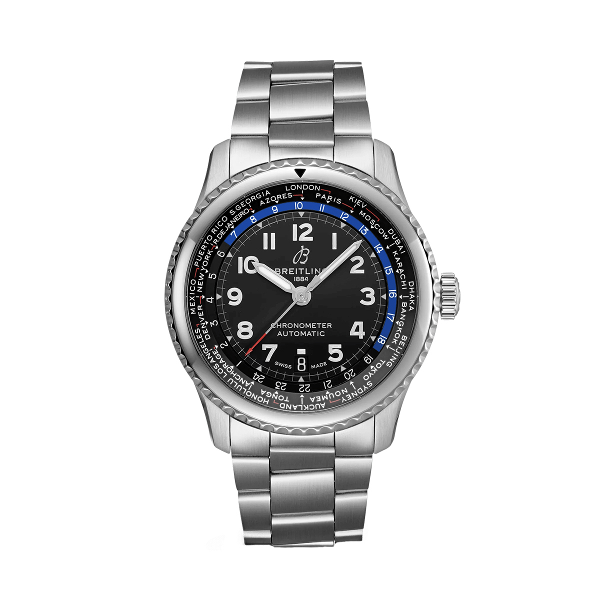 Модель Aviator 8 B35 43 STEEL - BLACK оснащена калибром Breitling B35, который обеспечивает точность и автономность работы до 70 часов. Функции мирового времени и даты делают этот часовой прибор незаменимым помощником для путешественников и деловых людей.