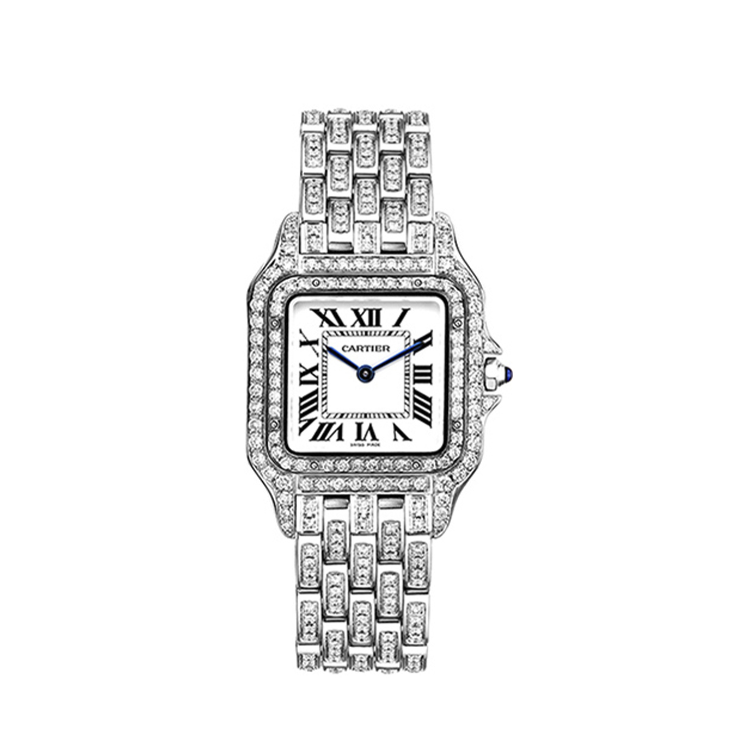 Small Panthere de Cartier Custom Diamonds Full Pave оснащены кварцевым механизмом, который обеспечивает высокую точность и надежность. Стекло из сапфира добавляет дополнительную защиту и прозрачность, а водонепроницаемость до 30 метров делает их идеальными для повседневного использования.