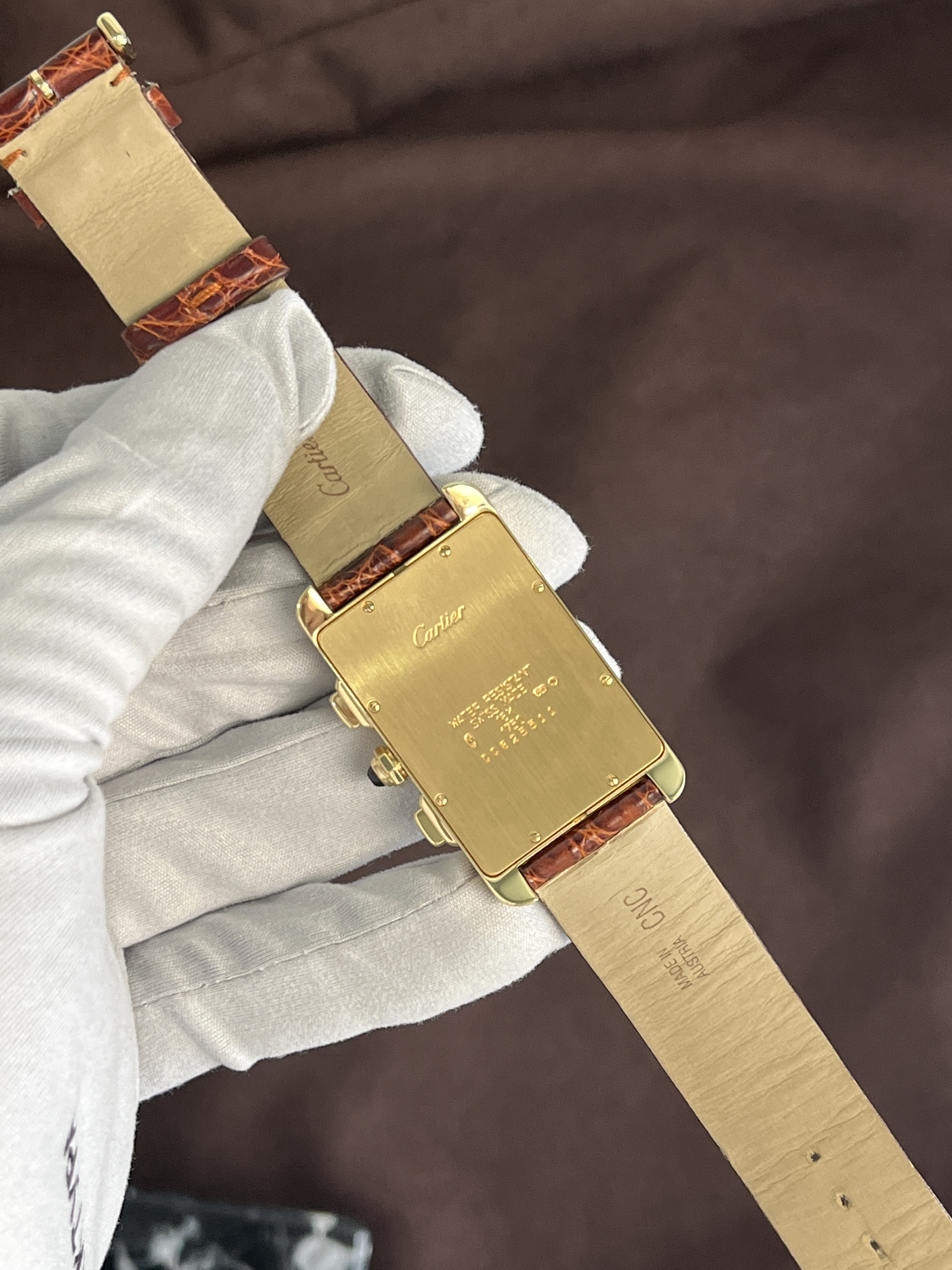 TANK Américaine CHRONOGRAPH 18K YELLOW GOLD оснащены кварцевым механизмом, который обеспечивает высокую точность и надежность. Функции хронографа и индикатор даты делают эти часы не только стильными, но и функциональными.