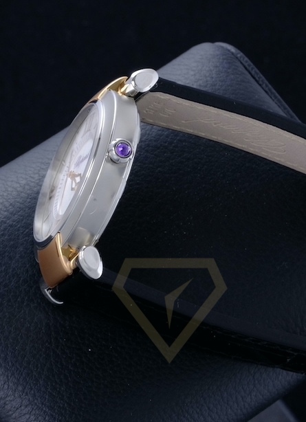 Корпус часов выполнен из роскошного розового золота, что придает им особую изящность и элегантность. Кожаный ремешок не только обеспечивает комфортное ношение, но и добавляет изделию дополнительный шарм. Сапфировое стекло гарантирует максимальную прочность и защиту от царапин.