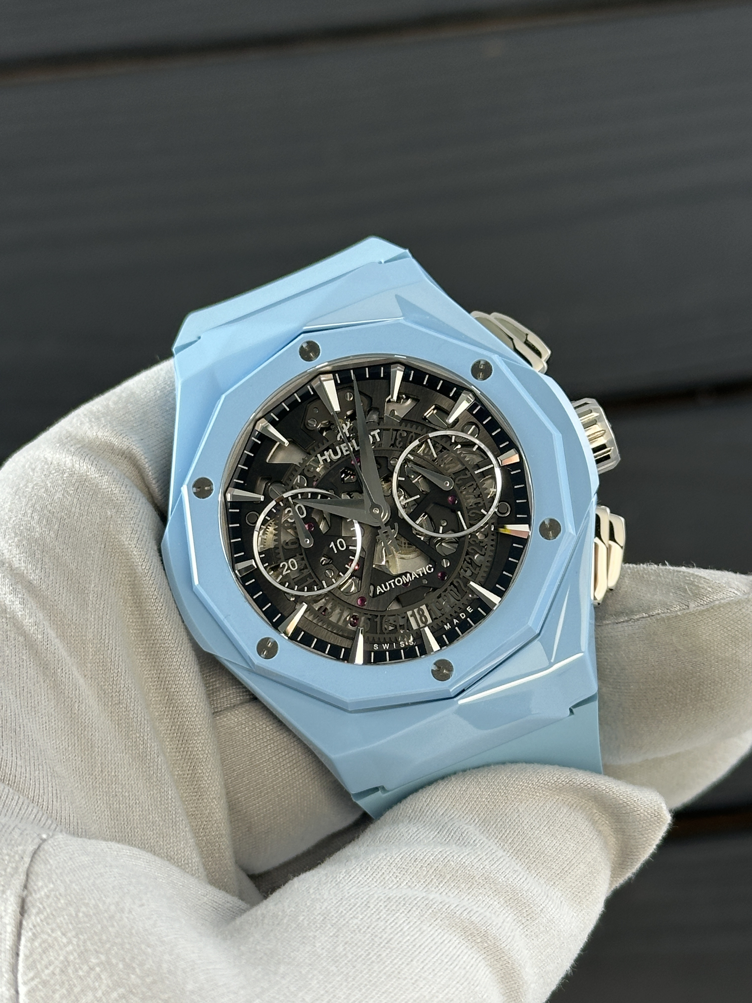 В мире часов и ювелирных изделий есть бренды, которые не нуждаются в представлении. Один из таких брендов - Hublot, известный своими инновационными и стильными часами. Именно от этого бренда мы предлагаем вам уникальный экземпляр - Classic Fusion Aerofusion Chronograph Orlinski Sky Blue Ceramic. Это не просто часы, это произведение искусства, которое объединяет в себе современные технологии и классический дизайн.