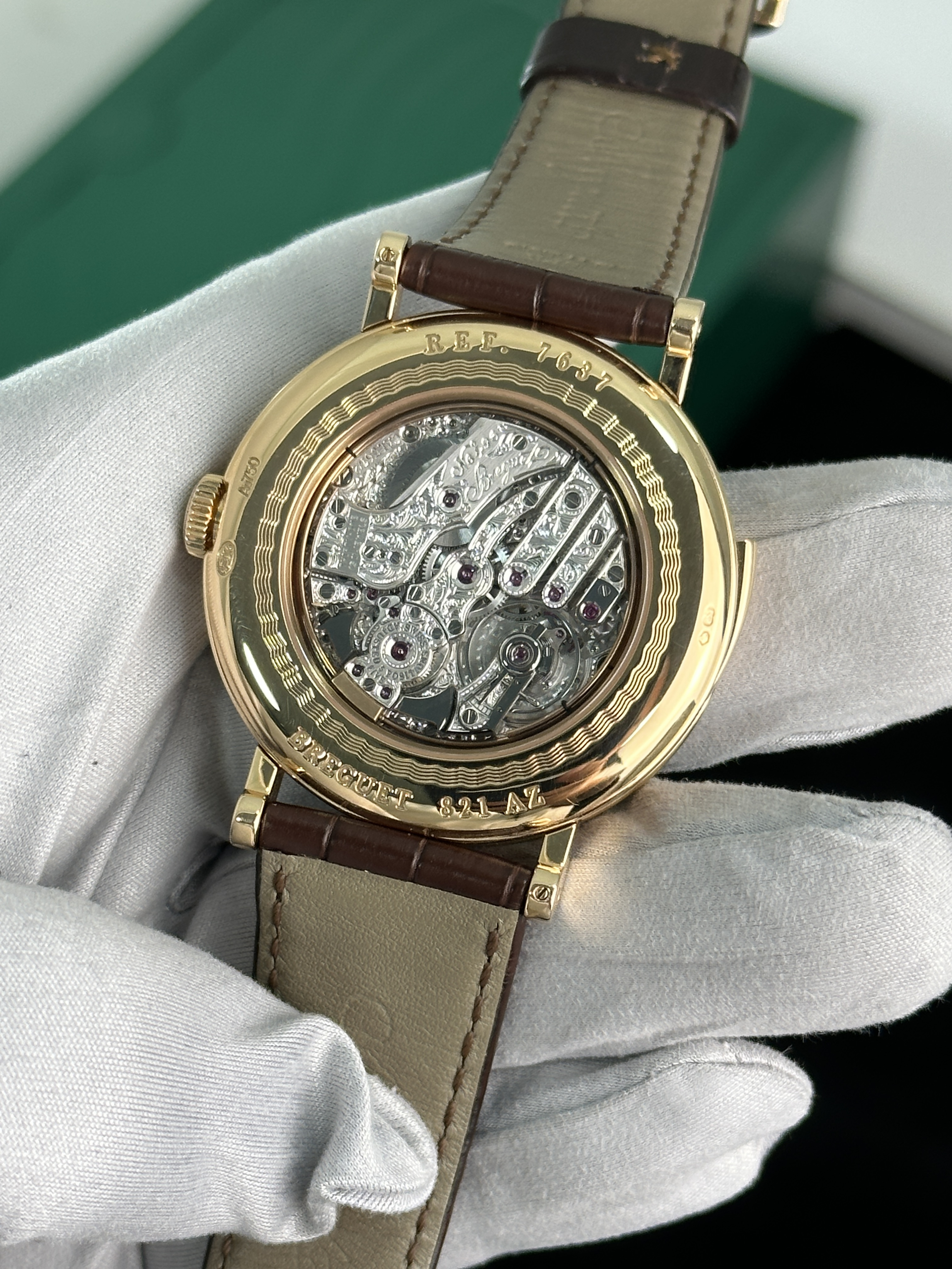 Вашему вниманию предлагается эксклюзивный шедевр часового искусства от легендарного бренда Breguet – модель Classique Grande Complications Repetition Minutes Rose Gold. Этот уникальный экземпляр, выполненный из роскошного розового золота, станет истинным украшением для истинного ценителя высокого искусства и элегантности.