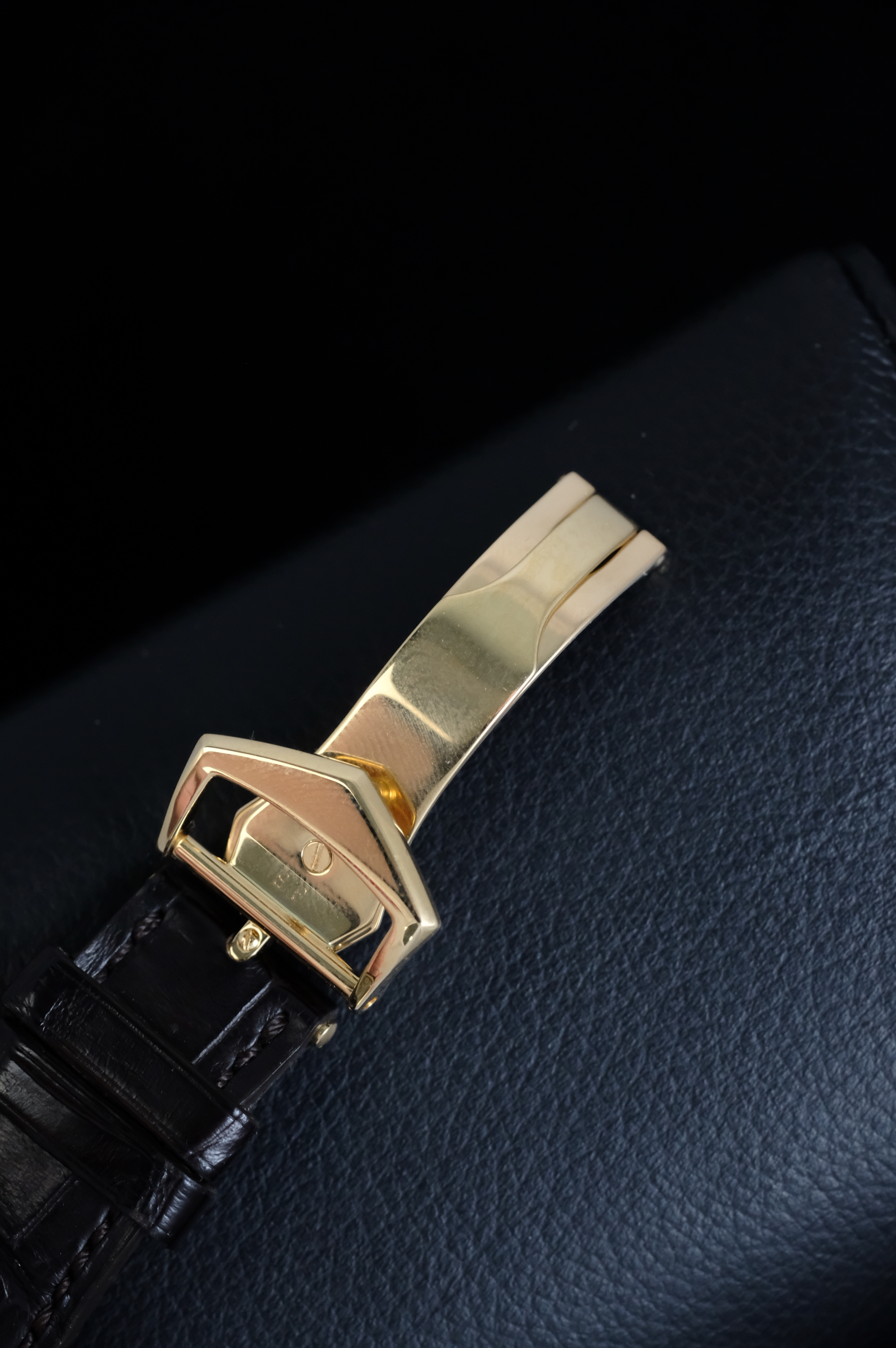 Эти мужские часы изготовлены из желтого золота, что придает им особую роскошь и элегантность. Размер корпуса составляет 39 мм, что делает их идеальными для тех, кто ценит утонченность и стиль. Ремешок из натуральной кожи добавляет дополнительный акцент на комфорт и изысканность.