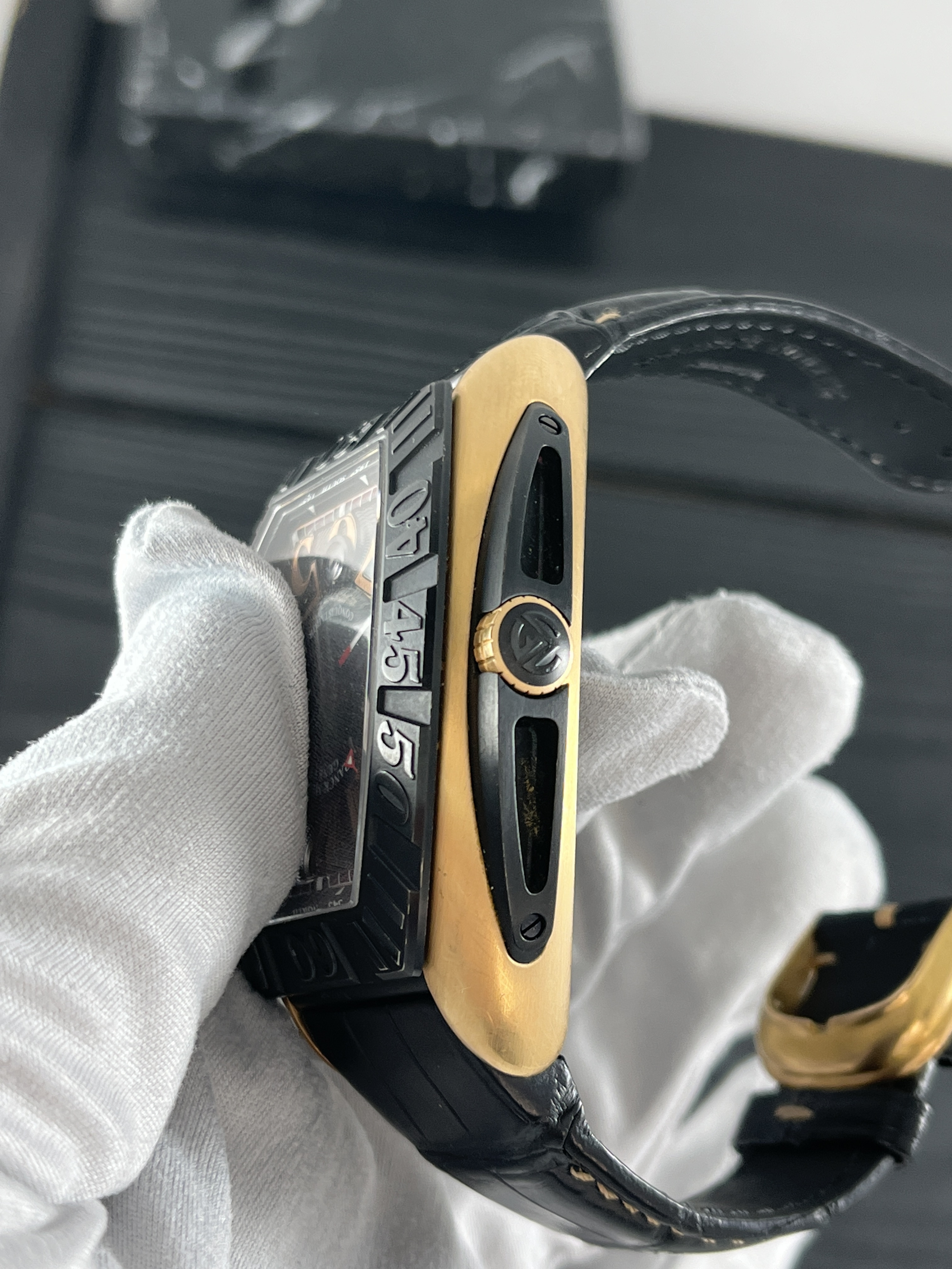 Эти мужские часы поражают своим внушительным размером – 48,0 х 57,0 мм, что делает их настоящим украшением для любого мужчины, ценящего стиль и статус. Корпус выполнен из прочного и долговечного материала PVD, покрытого розовым золотом, что придает часам особую изысканность и роскошь. Ремешок из натуральной кожи гармонично дополняет общий дизайн, создавая ощущение комфорта и элегантности.