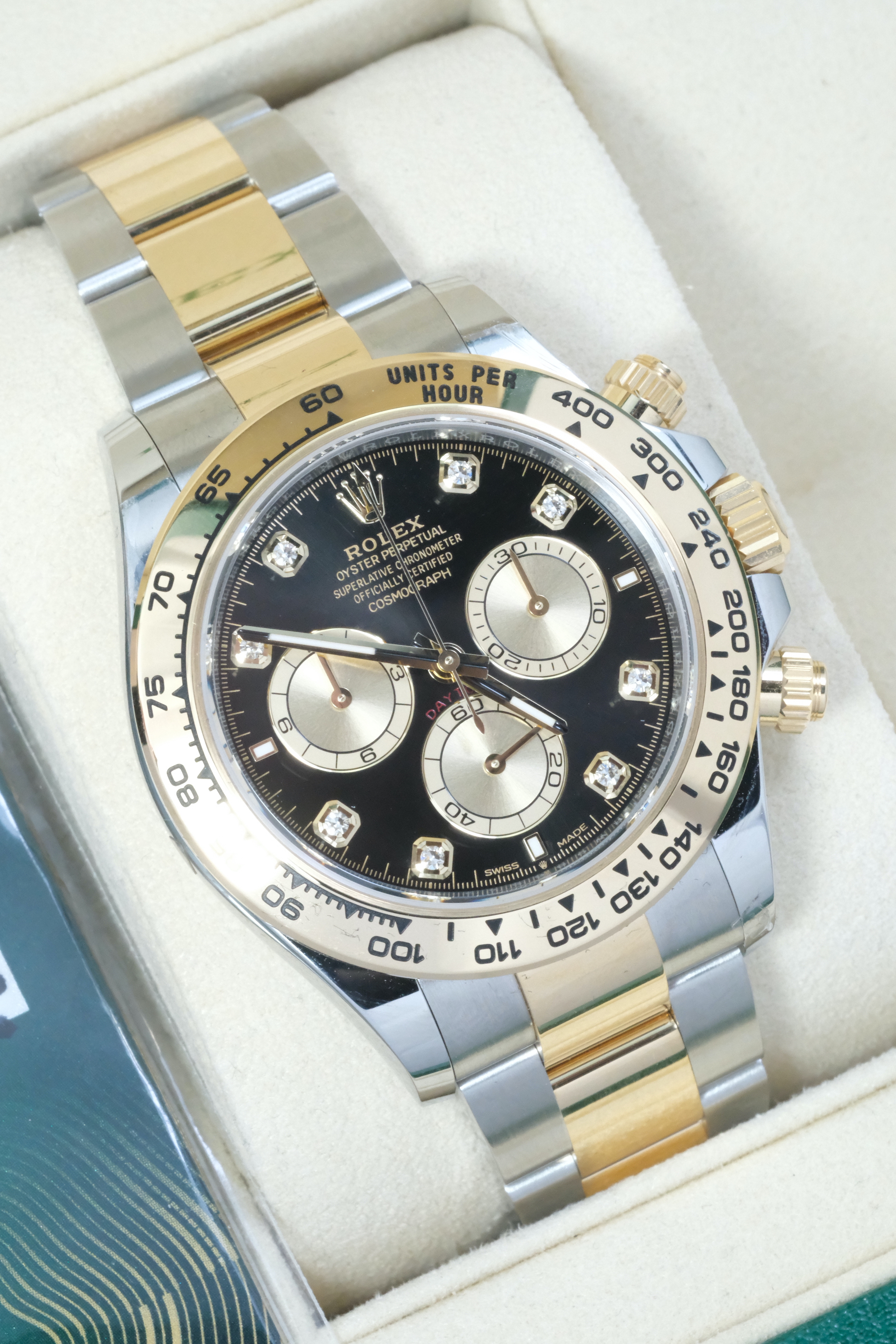 Rolex Cosmograph Daytona Steel & Yellow Gold Black Dial Diamond Index