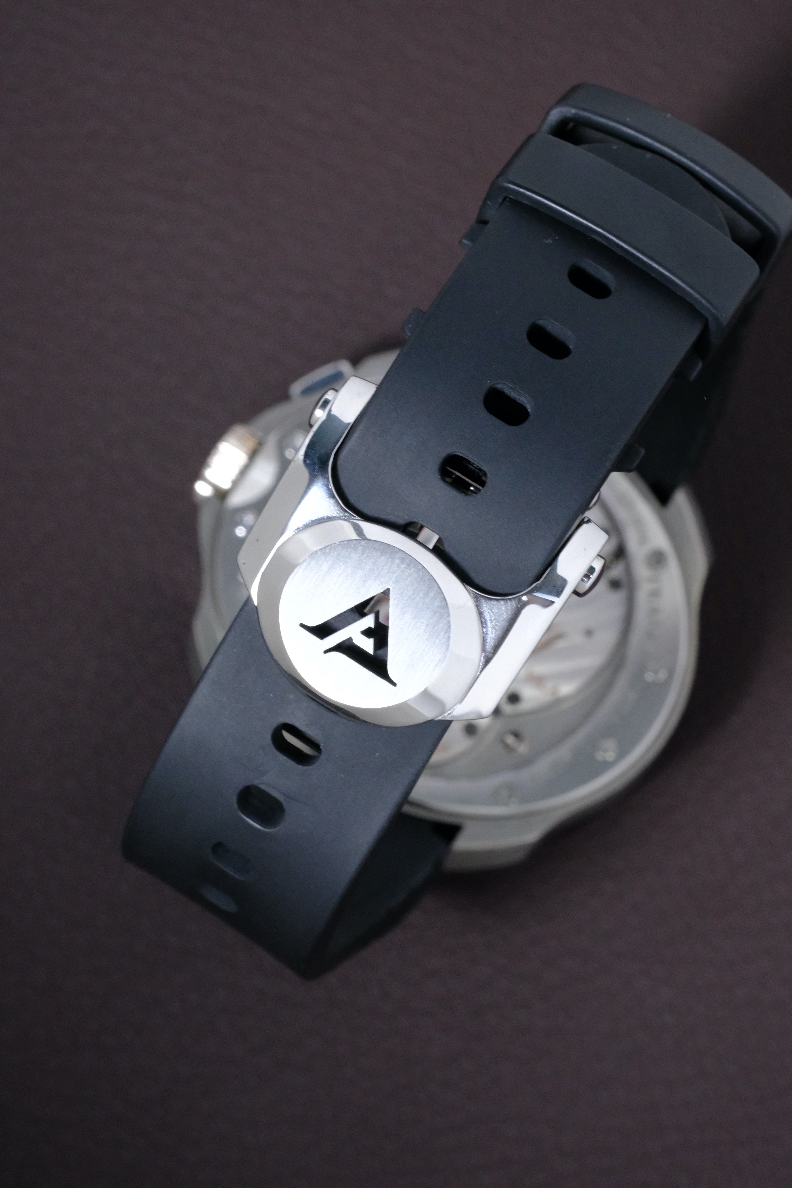 Эти мужские часы, выполненные из прочной стали, поражают своим размером – 51 на 42 мм, что делает их идеальными для тех, кто ценит не только функциональность, но и стиль. Ремешок из натуральной кожи добавляет изделию дополнительный шарм и элегантность. Сапфировое стекло обеспечивает максимальную прозрачность и защиту от царапин, позволяя наслаждаться изысканными деталями механизма.