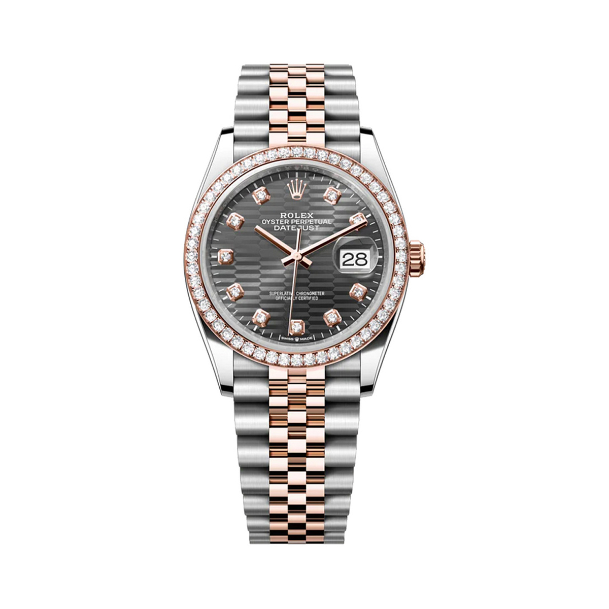 Rolex Datejust 36 Rose Gold/steel Fluted Motif Dial Diamond Bezel Jubilee Bracelet
