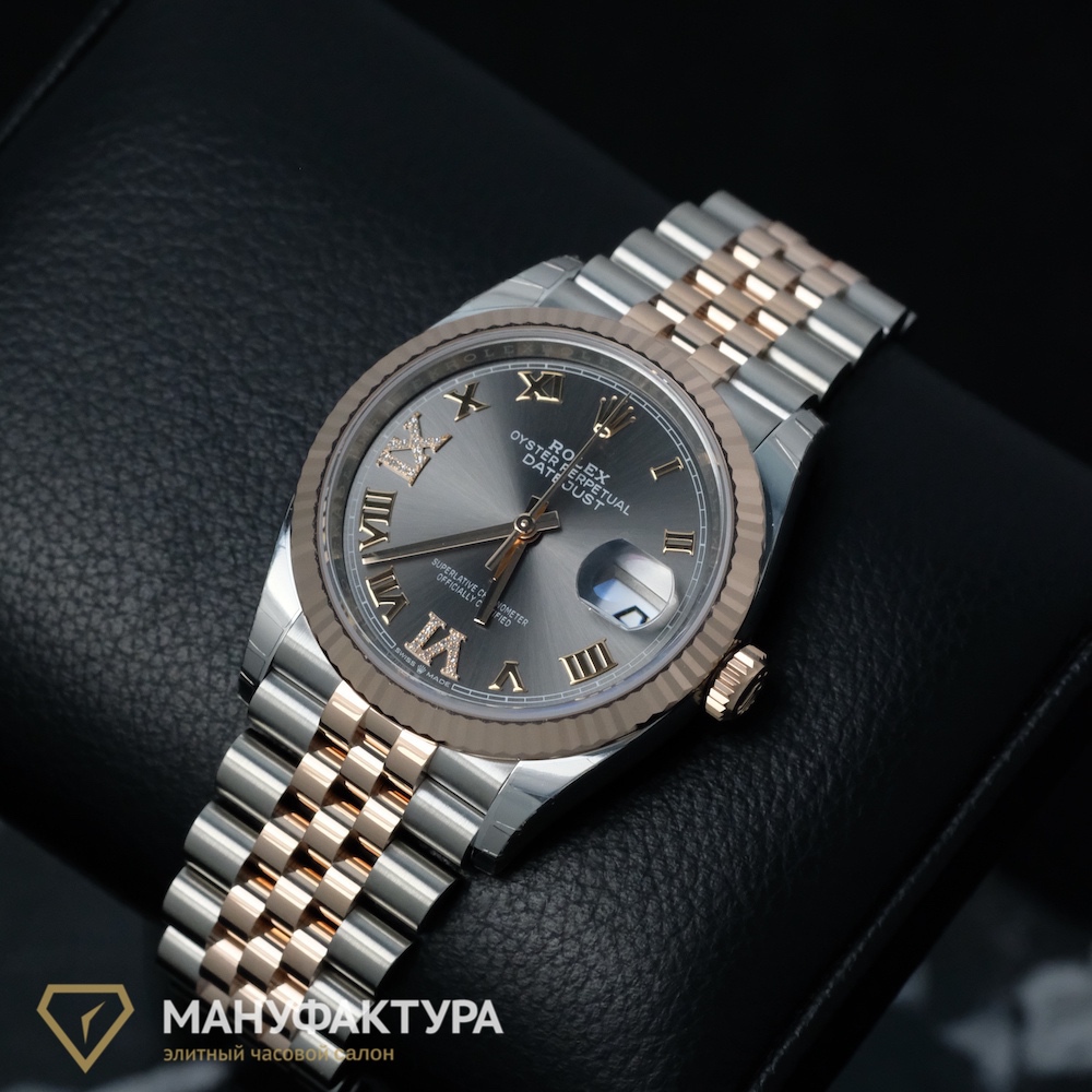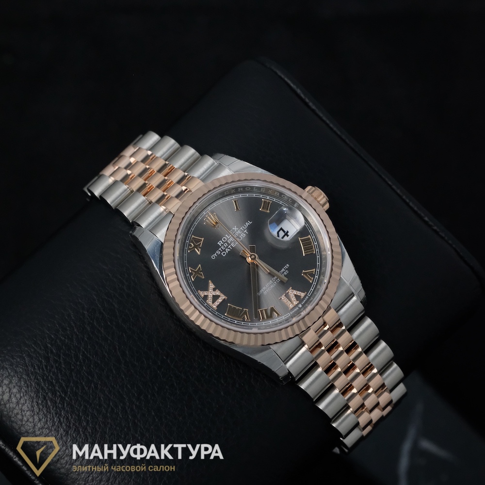 Rolex Datejust 36mm Steel And Everose Gold Slate And 6, 9 Diamonds