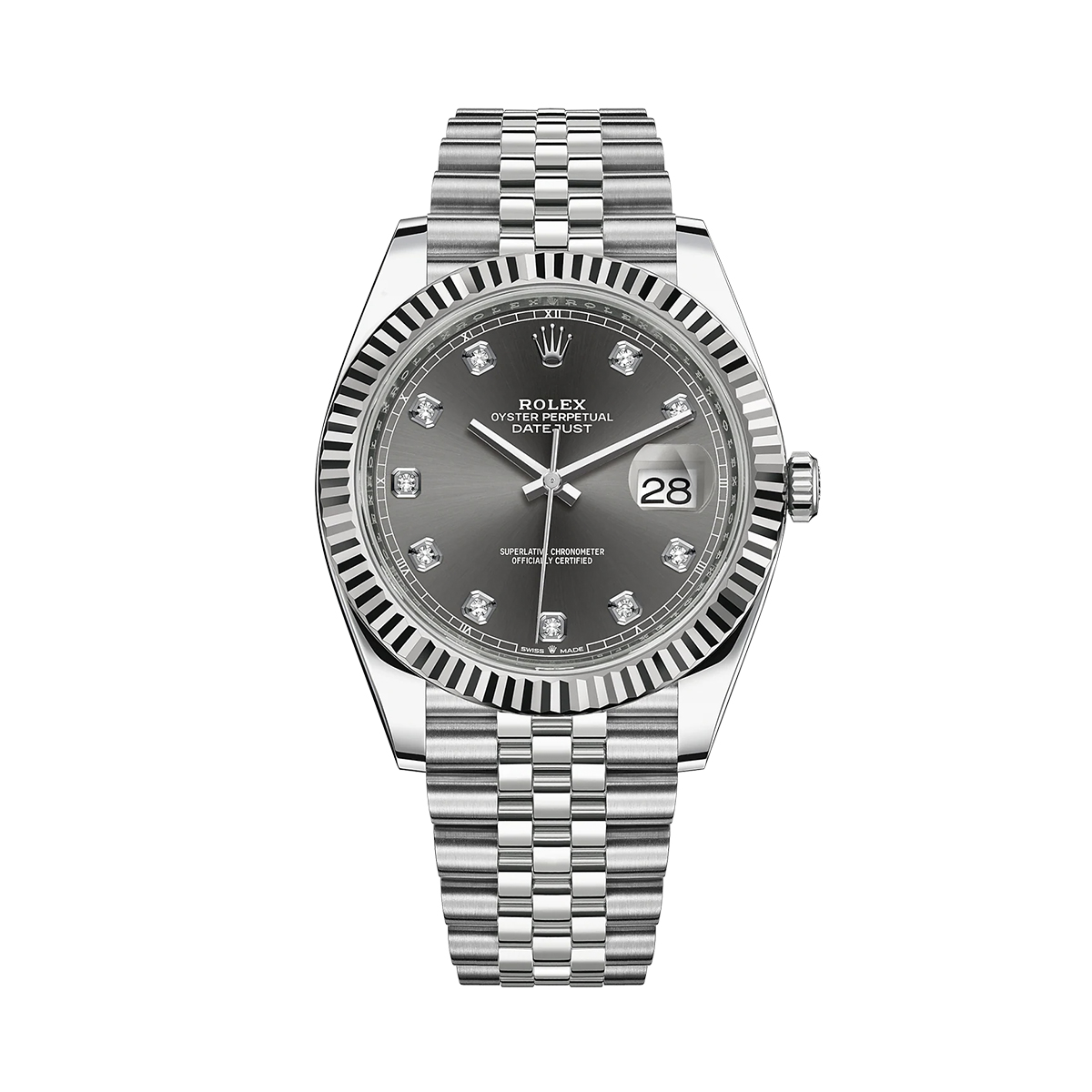 Модель Datejust 41mm Grey Dial Diamonds Jubilee, выпущенная в 2021 году, является настоящим произведением искусства. Ее корпус выполнен из стали и белого золота, что придает часам не только прочность, но и изысканный внешний вид. Браслет, изготовленный из тех же материалов, обеспечивает комфортное ношение и подчеркивает статус владельца.
