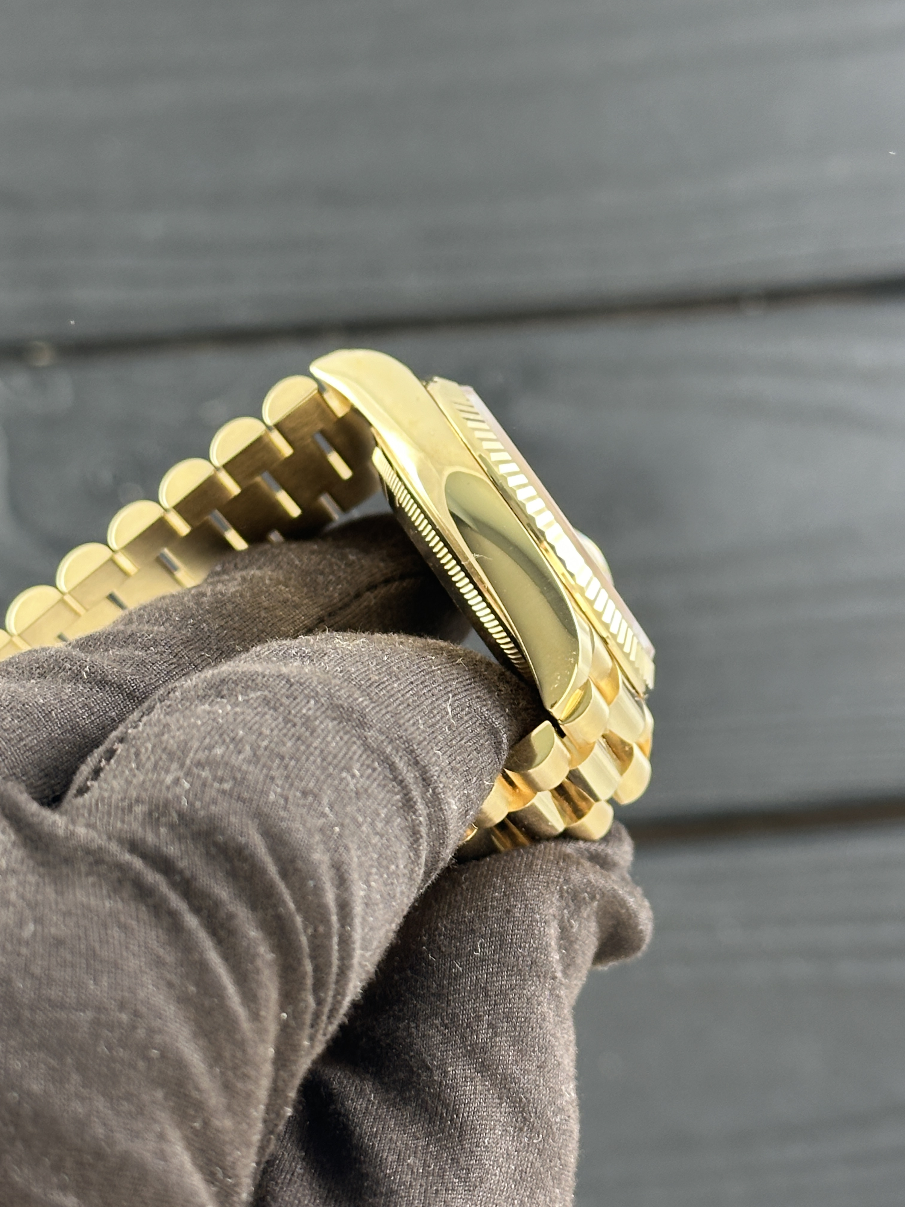Часы Day-Date 36 Orange Carnelian Dial – это не просто аксессуар, это произведение искусства, созданное из желтого золота и украшенное сапфировым стеклом. Их оранжевый карнелиановый циферблат словно светится изнутри, привлекая к себе внимание и вызывая восхищение. Браслет из желтого золота идеально дополняет этот шедевр, делая его еще более роскошным и изысканным.