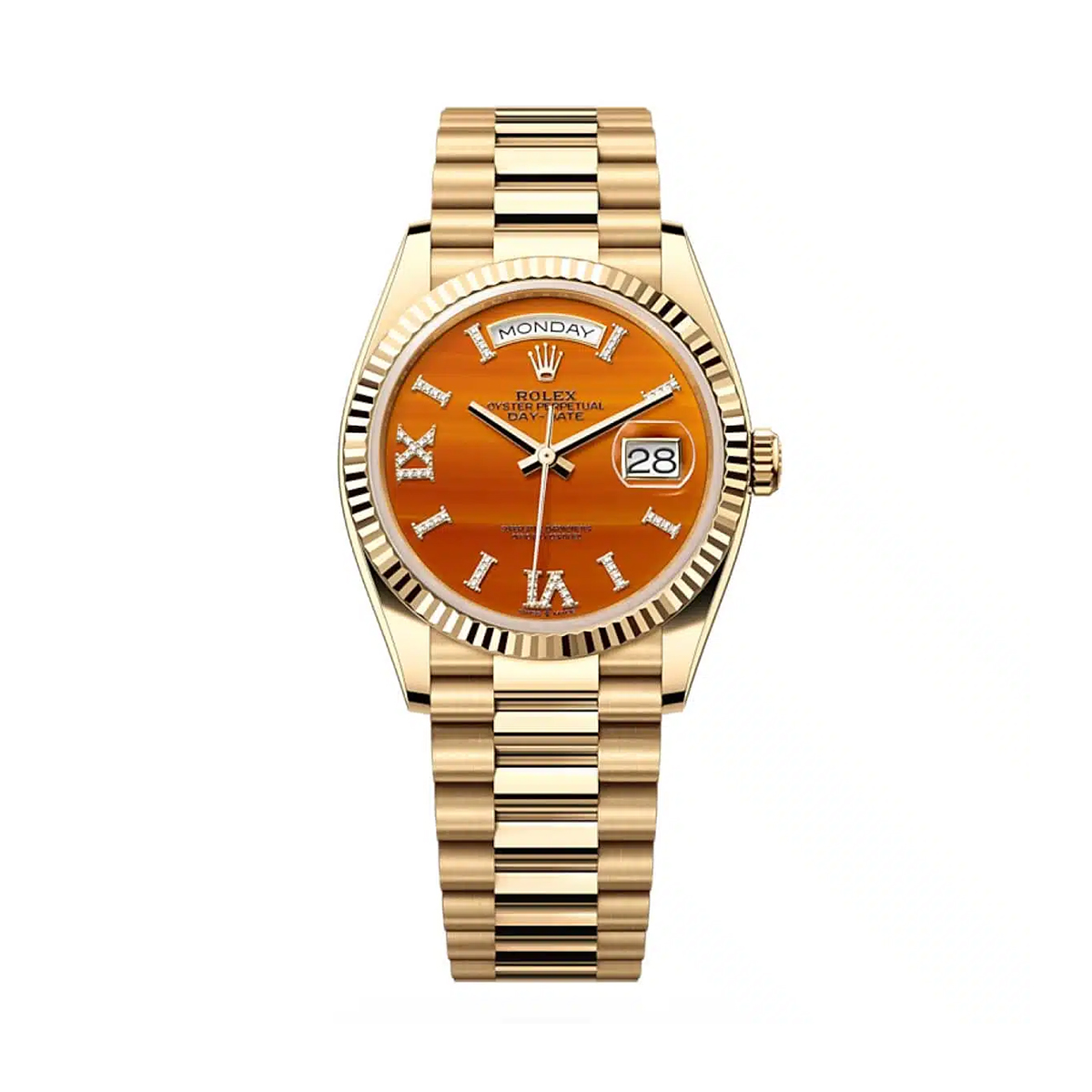 Какой подарок вы бы хотели сделать своей любимой, чтобы она почувствовала себя настоящей королевой? Ответ прост: это часы Day-Date 36 Orange Carnelian Dial от легендарного бренда Rolex. Эти шедевры швейцарского часового искусства не просто украшают руку, они делают из своей обладательницы настоящую икону стиля и элегантности.