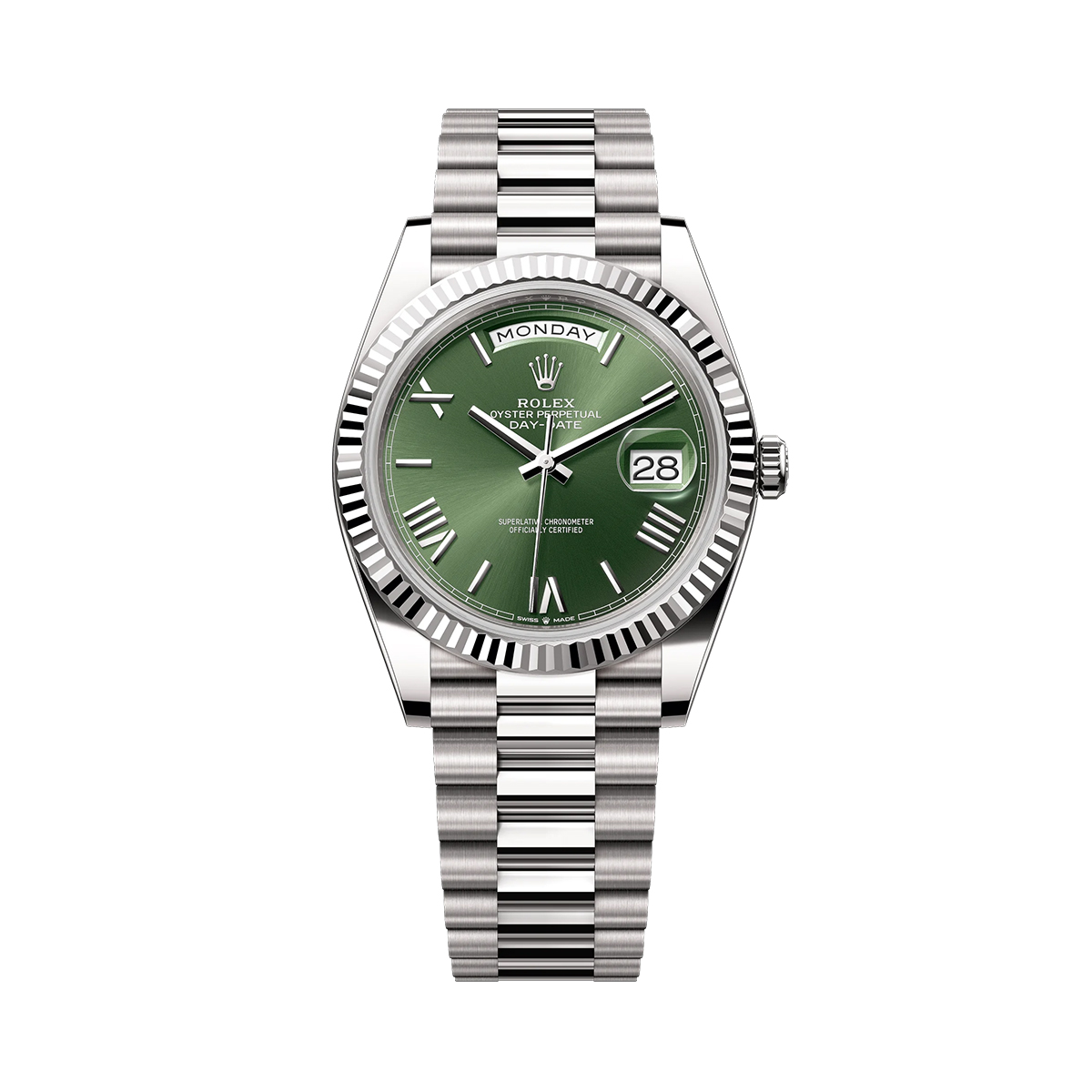Rolex Day Date 40 Mm White Gold Olive Dial