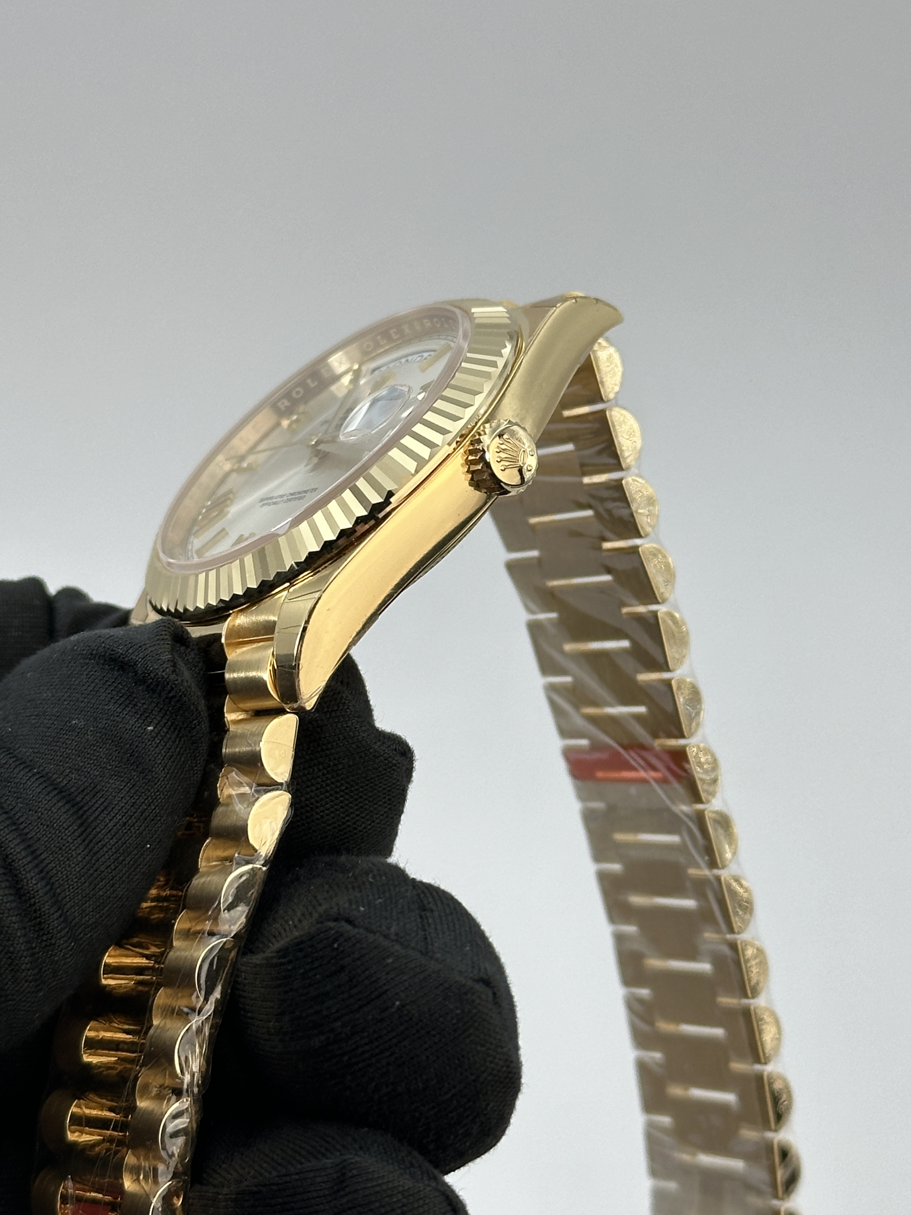 Какой часовой бренд ассоциируется у вас с высшим качеством, непревзойденным стилем и непоколебимой надежностью? Безусловно, это Rolex. Именно поэтому мы в часовом салоне «Мануфактура» предлагаем вашему вниманию уникальные швейцарские часы Day Date 40mm Yellow Gold Silver Dial от этого легендарного бренда.