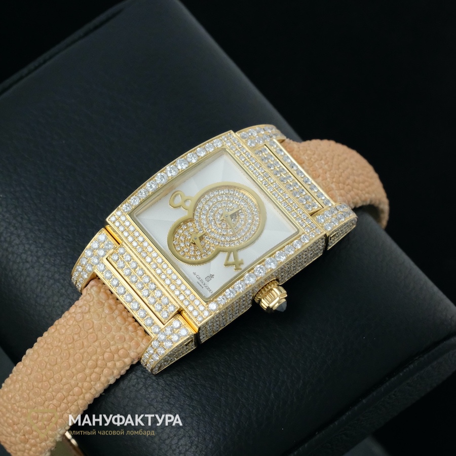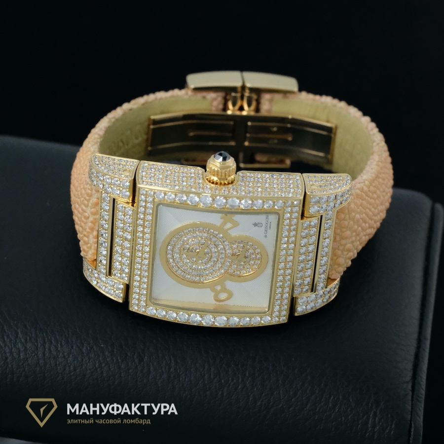 Купив часы Instrumentino от De Grisogono в нашем часовом салоне «Мануфактура», вы не только получите изысканный аксессуар, но и гарантию на один год. Мы гарантируем, что все наши товары проходят тщательную предпродажную подготовку и находятся в идеальном состоянии. Безопасность сделки обеспечивается с помощью документов, подтверждающих подлинность и качество товара.