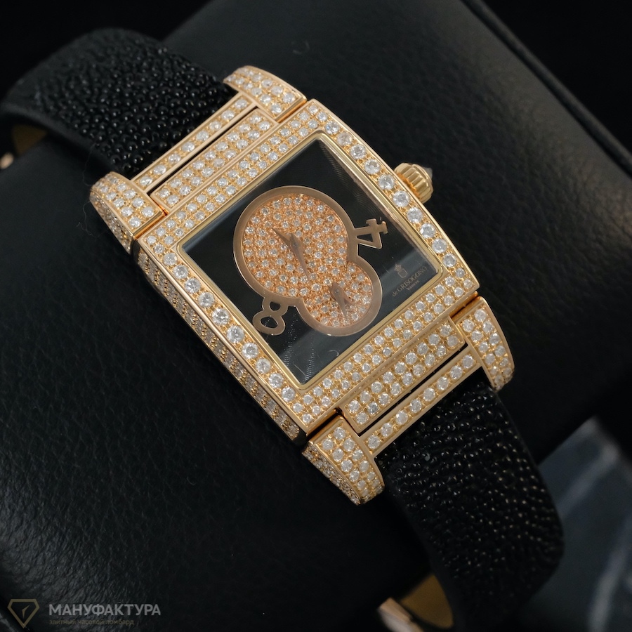 Uno Custom Diamonds – это часы, выполненные из розового золота, что придает им особую изысканность и элегантность. Размер корпуса составляет 33 на 56 мм, что делает их идеальными для тех, кто ценит комфорт и стиль. Ремешок из натуральной кожи добавляет дополнительный акцент на элегантность и изысканность этих часов.