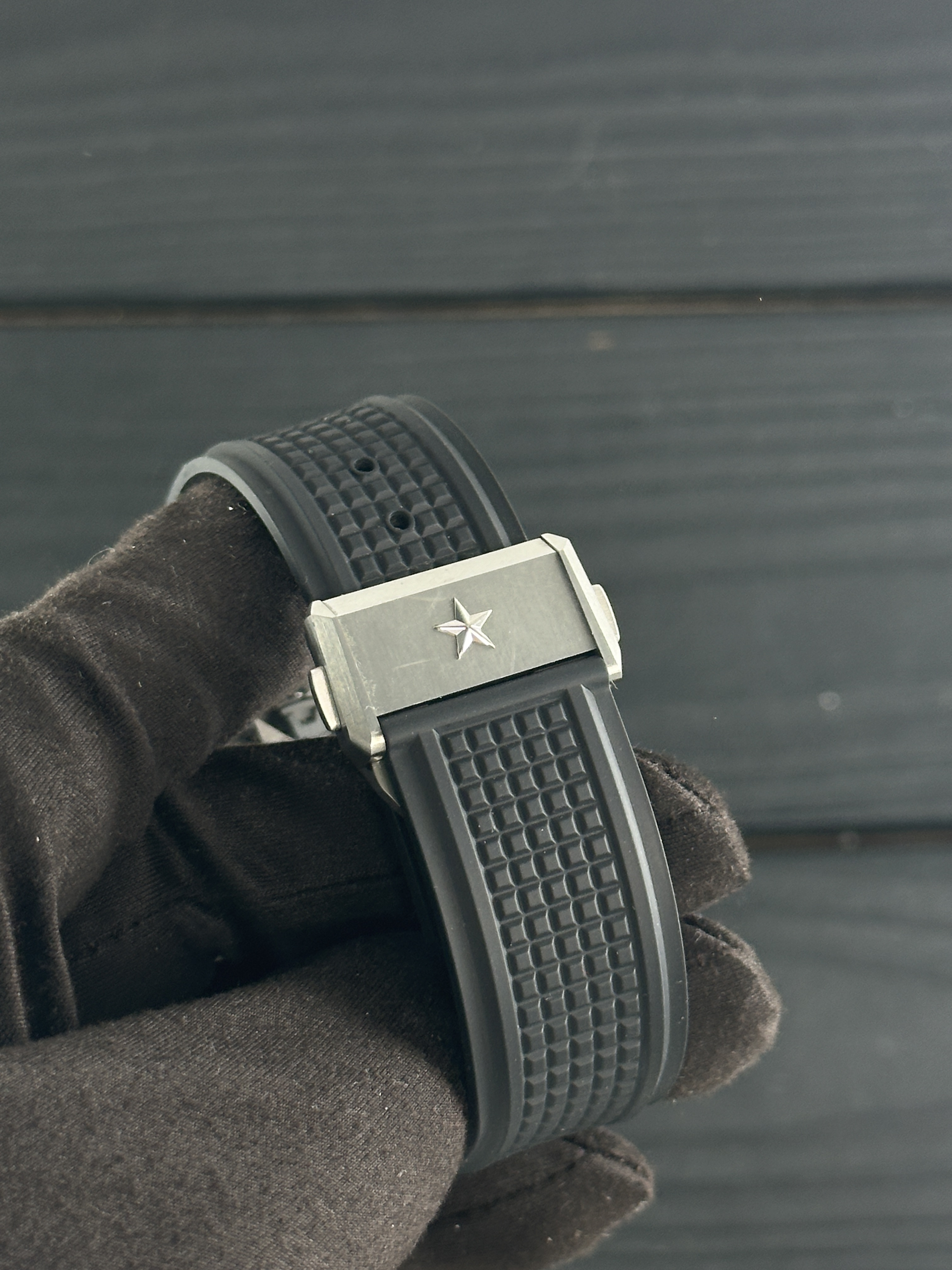 Эти мужские часы – настоящий шедевр швейцарского часового искусства, выполненный из титана, что делает их не только стильными, но и легкими, а также устойчивыми к коррозии. Размер корпуса составляет 44 мм, что идеально подходит для мужской руки, а каучуковый ремешок обеспечивает комфортное ношение.