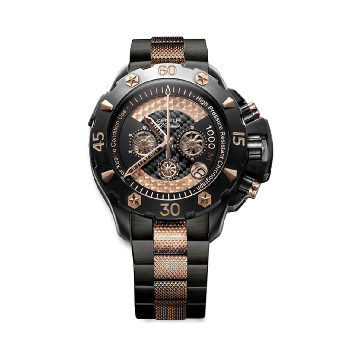 Какой часовой бренд ассоциируется у вас с высочайшим мастерством и непревзойденным качеством? Безусловно, это Zenith, и именно его шедевр, Defy Xtreme, мы предлагаем вашему вниманию в нашем часовом салоне «Мануфактура». Этот мужской хронограф, выполненный из желтого золота, PVD и титана, поражает своей мощностью и изысканностью. Его корпус, диаметром 46.5 мм, выглядит внушительно и стильно, а браслет из того же материала добавляет ему дополнительную элегантность.