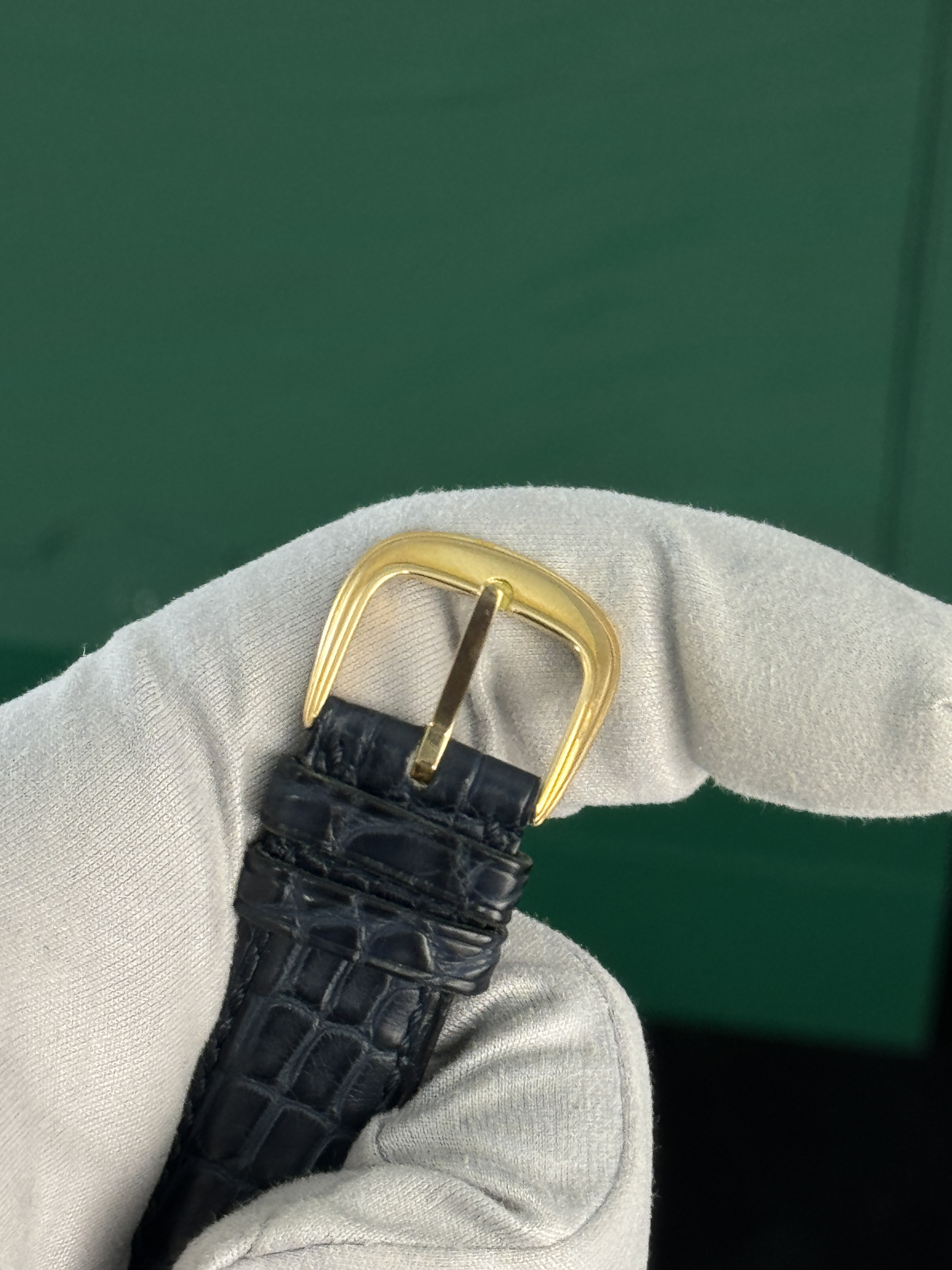Эти часы - настоящий шедевр швейцарского часового искусства. Их корпус изготовлен из роскошного розового золота, что придает им особую изящность и элегантность. Размер корпуса составляет 38 мм, что делает их идеальными для мужской руки. Ремешок из натуральной кожи добавляет дополнительный акцент на комфорт и стиль.