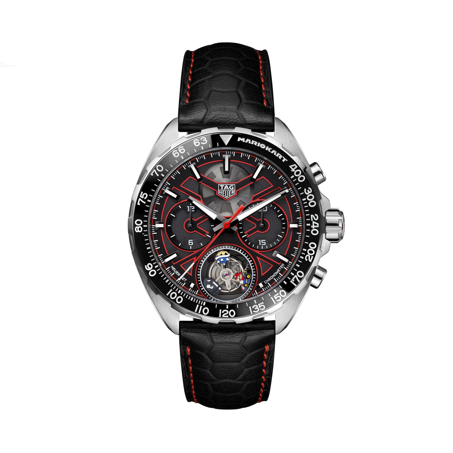 Созданные в сотрудничестве с легендарной гоночной серией MARIO KART, эти часы обладают уникальным дизайном, который отражает дух скорости и адреналина. Корпус из титана обеспечивает легкость и прочность, а кожаный ремешок добавляет изделию элегантности и комфорта в носке.