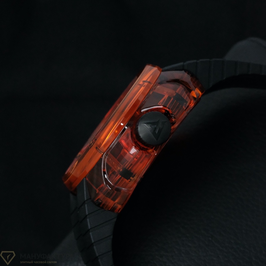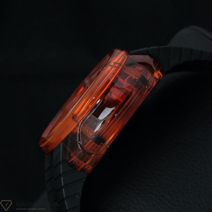 Созданные для настоящих ценителей искусства и техники, часы Complication Suspended Skeleton Transparent Neoralite обладают сложным механизмом, который позволяет наслаждаться не только их внешним видом, но и внутренним устройством. Благодаря прозрачному сапфировому стеклу, вы сможете наблюдать за работой механизма, что добавляет часам еще больше очарования.
