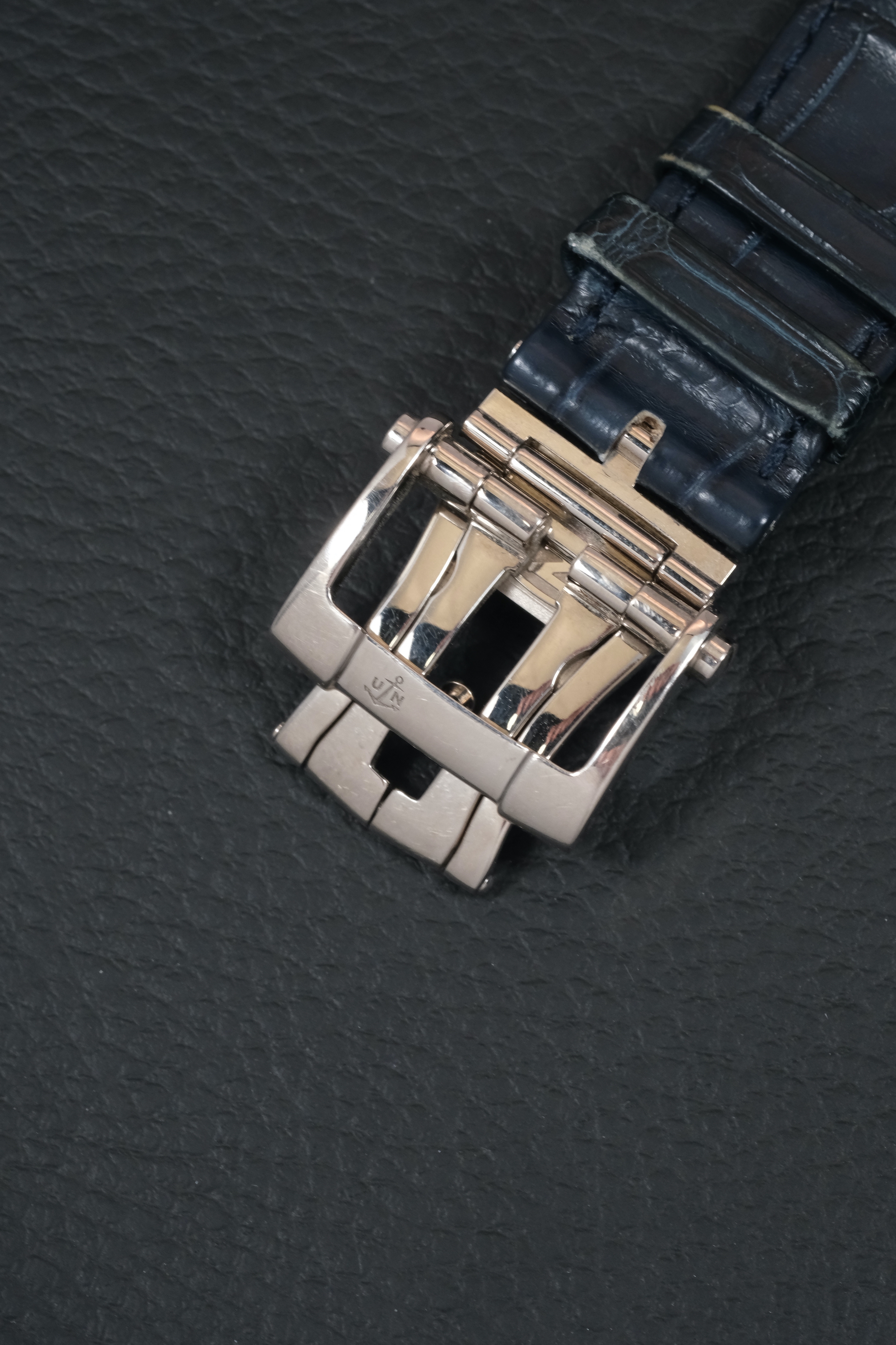 Freak Blue Phantom – это мужские часы, выполненные из белого золота, что придает им особую изысканность и элегантность. Размер корпуса составляет 44,5 мм, что делает их идеальными для тех, кто ценит комфорт и стиль. Ремешок из натуральной кожи добавляет изделию дополнительный штрих элегантности и подчеркивает его статусный характер.
