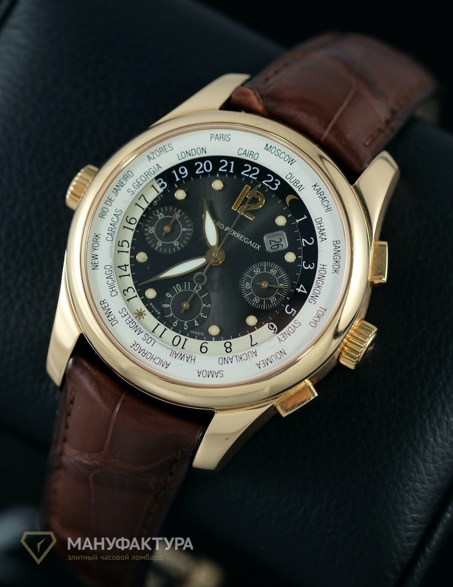 Какой часовой бренд ассоциируется у вас с высшим уровнем мастерства и непревзойденным стилем? Безусловно, это Girard-Perregaux, и именно его шедевр, часы Worldtimer Chrono WW.TC, мы предлагаем вашему вниманию в нашем часовом салоне «Мануфактура».