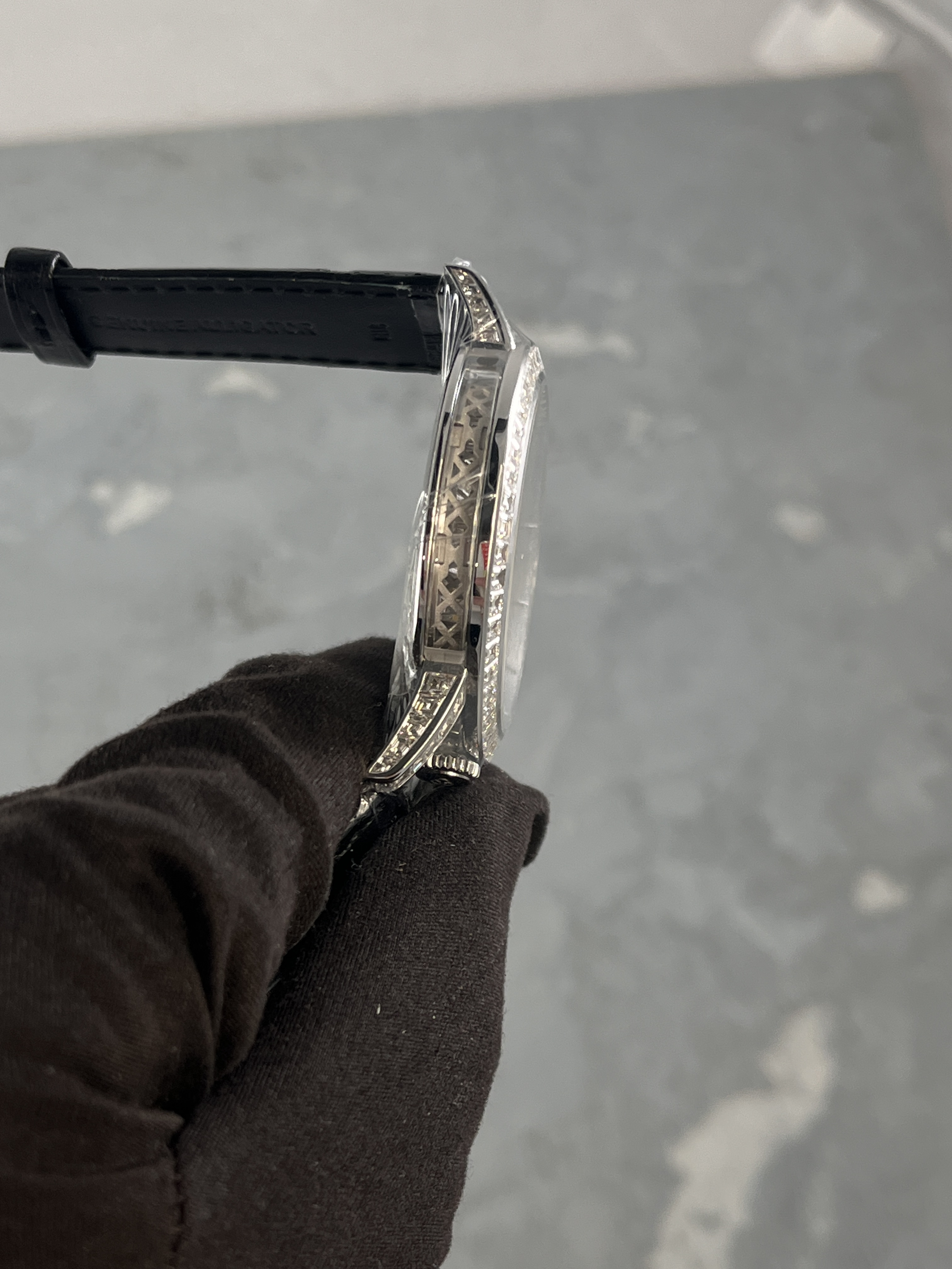 Созданные из белого золота, эти часы украшены бриллиантами, что придает им дополнительный блеск и роскошь. Размер корпуса составляет 43 мм, что делает их идеальными для женщин, ценящих элегантность и стиль. Механизм с ручным заводом подчеркивает мастерство швейцарских часовщиков и обеспечивает точность и надежность работы часов.