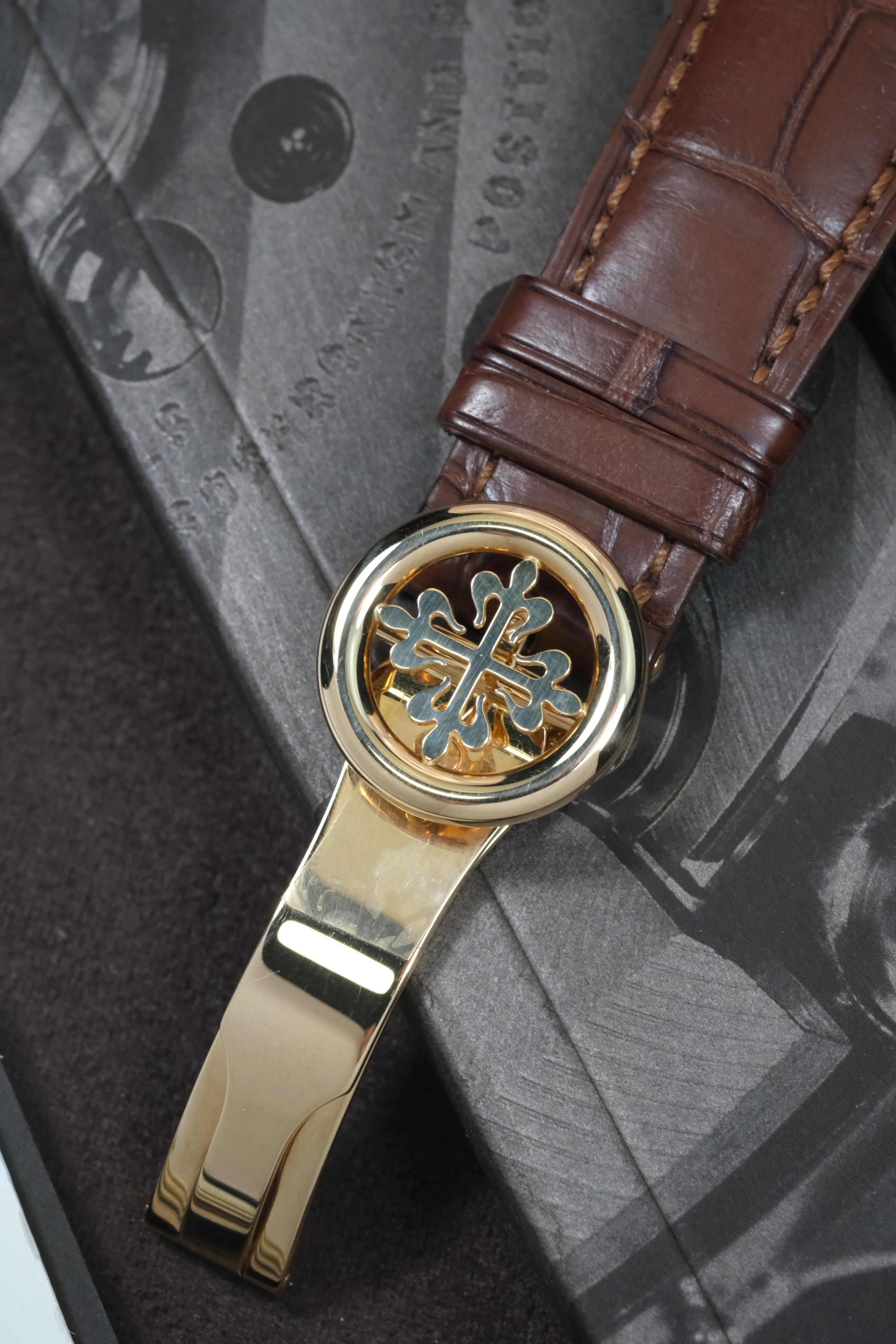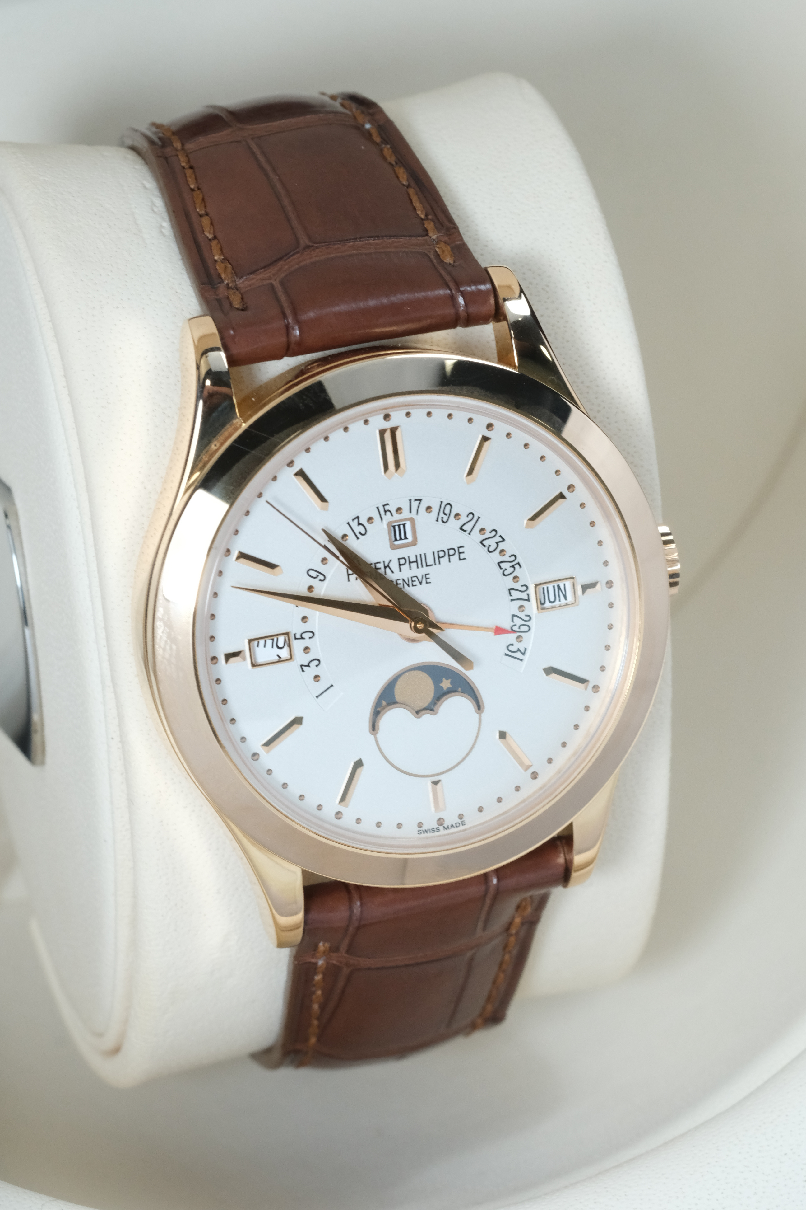 Эти мужские часы с референсом 5496R-001 изготовлены из роскошного розового золота и оснащены кожаным ремешком, который добавляет им изысканности и элегантности. Корпус диаметром 39,5 мм подчеркивает мужественность и стиль владельца. Сапфировое стекло обеспечивает идеальную видимость всех деталей механизма, а также защищает часы от повреждений.
