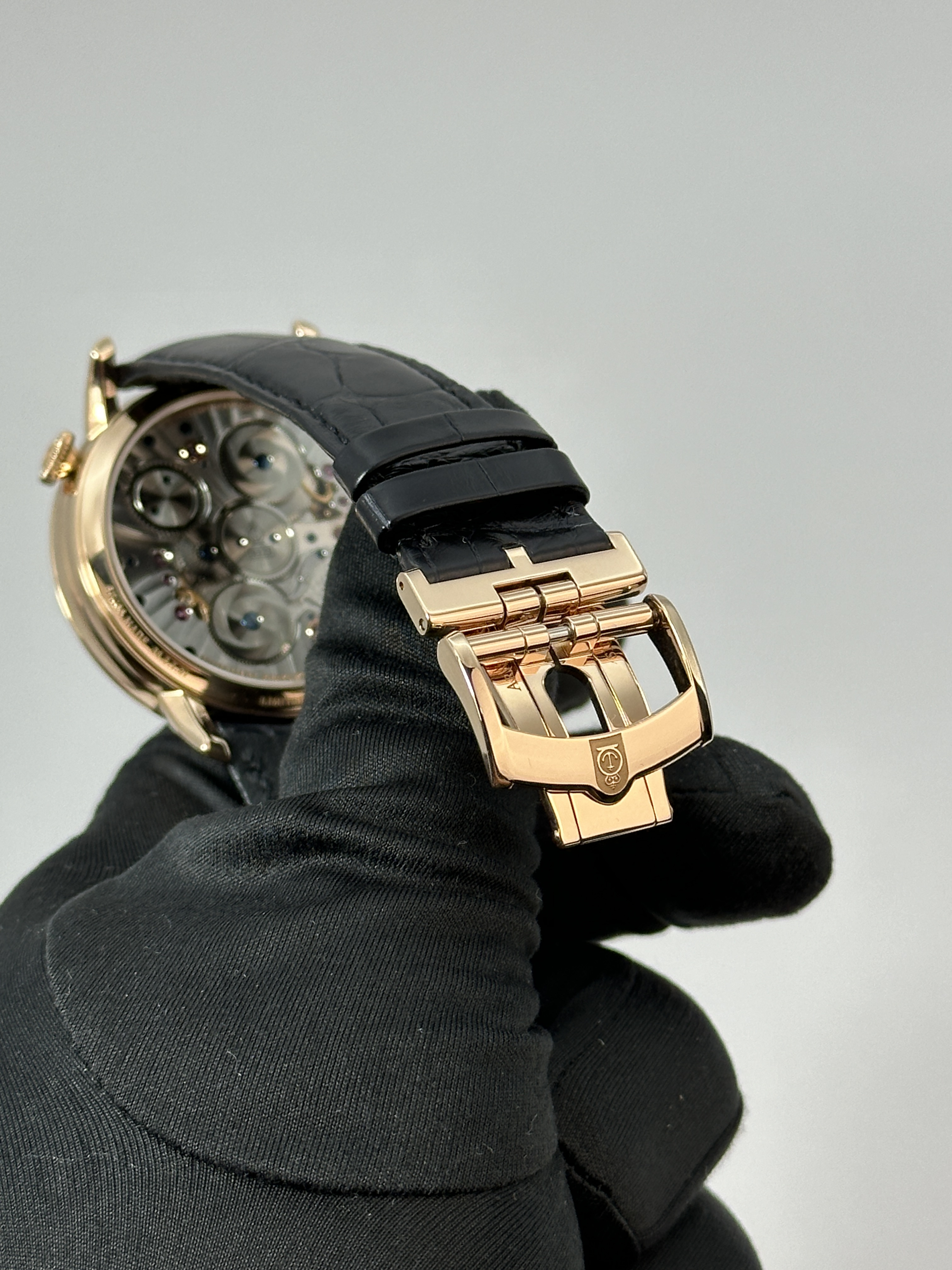 Каждые часы Grandes Complications Double Tourbillon Rose Gold поставляются в оригинальной коробке, что делает их идеальным подарком для себя или близкого человека. Также в комплекте идут документы, подтверждающие подлинность и качество изделия.
