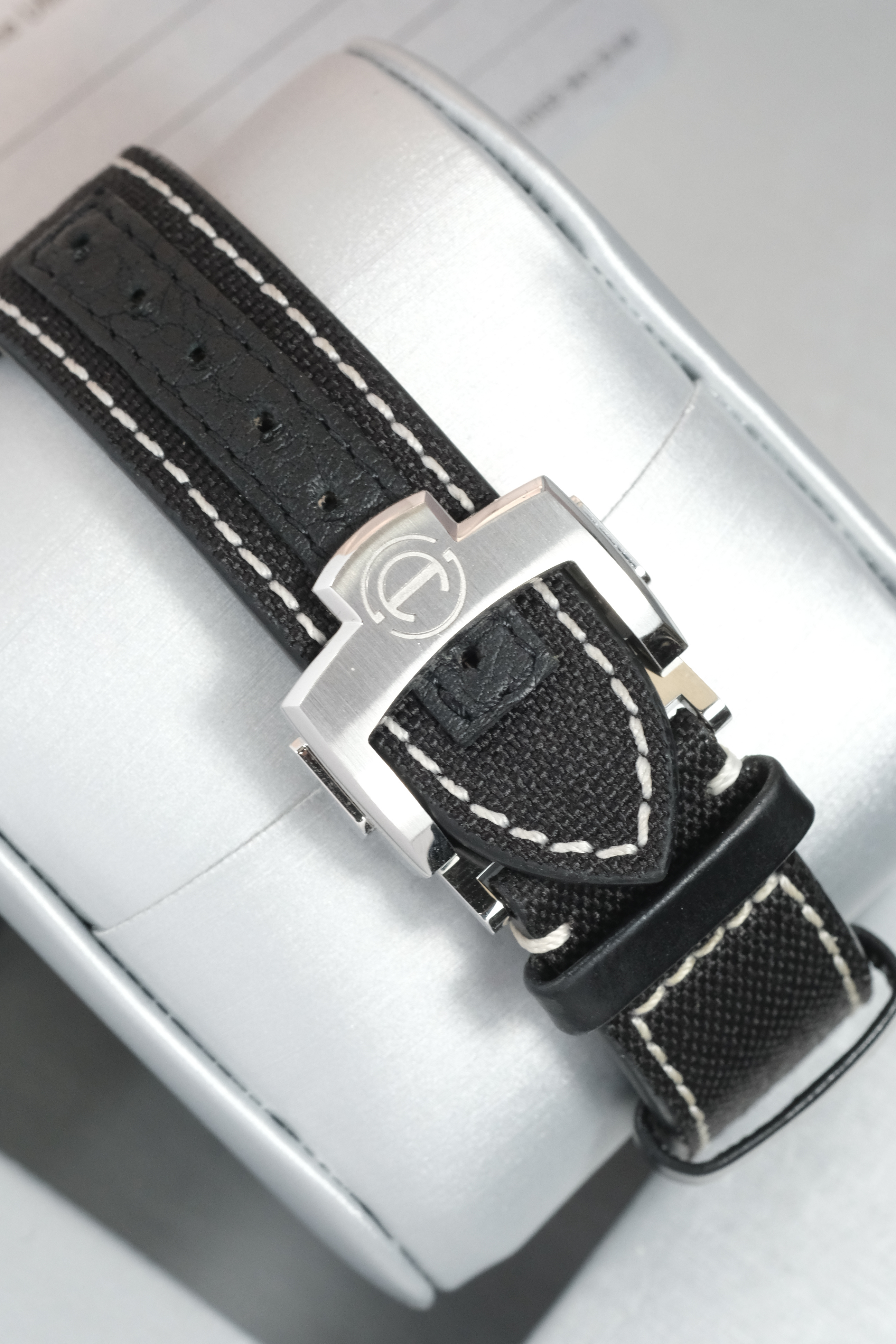 Корпус из стали размером 41 мм подчеркивает мужественность и стиль владельца, а тканевый ремешок добавляет изделию дополнительный комфорт и элегантность. Сапфировое стекло обеспечивает отличную видимость и защищает механизм от повреждений, а водонепроницаемость до 30 метров делает эти часы идеальным выбором для любителей активного образа жизни.