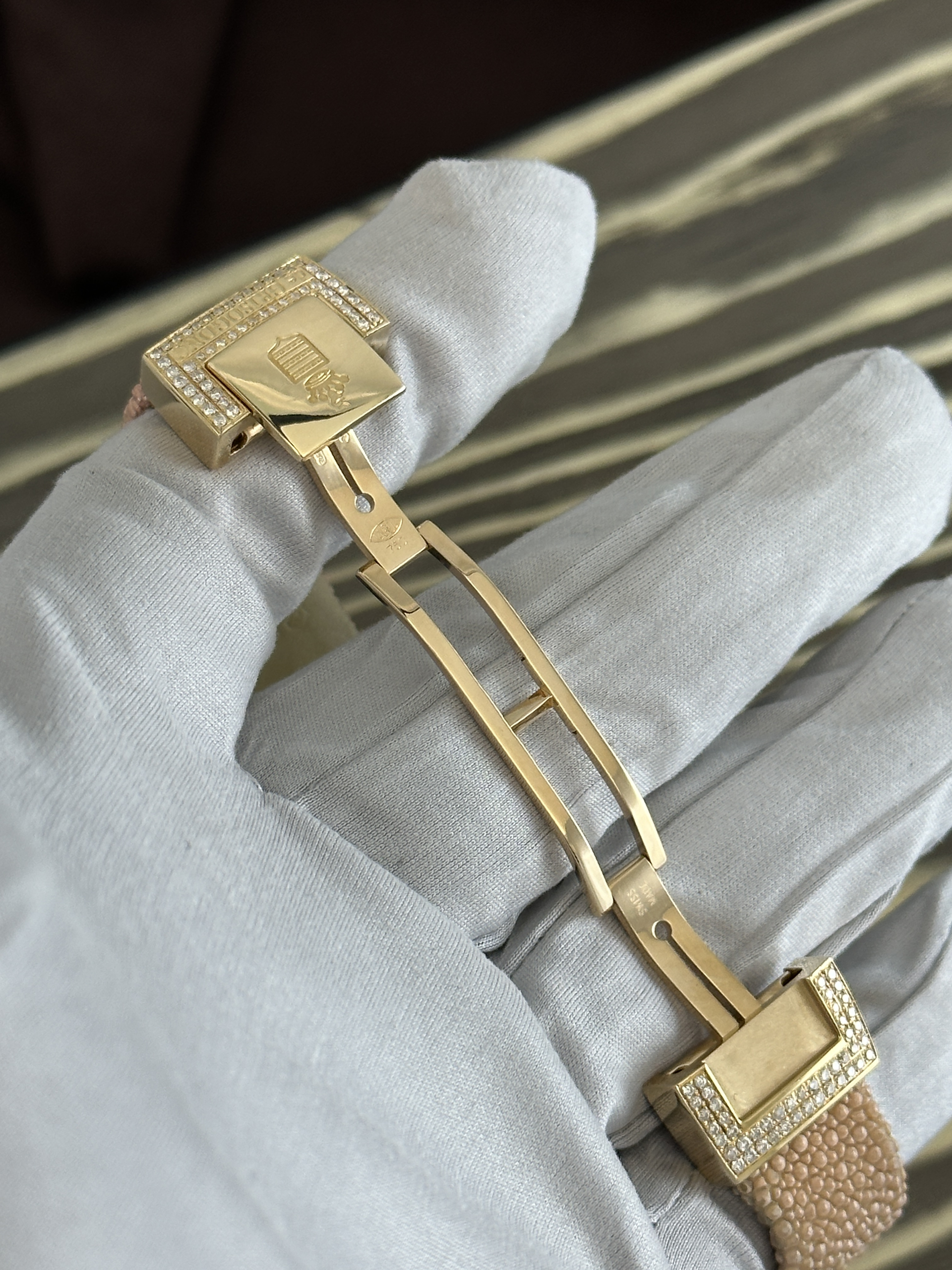 Созданные из розового золота и украшенные бриллиантами, эти часы не только отражают вашу индивидуальность, но и говорят о вашем статусе. Механизм с автоподзаводом обеспечивает точность и надежность, а кожаный ремешок добавляет изделию комфорт и элегантность.