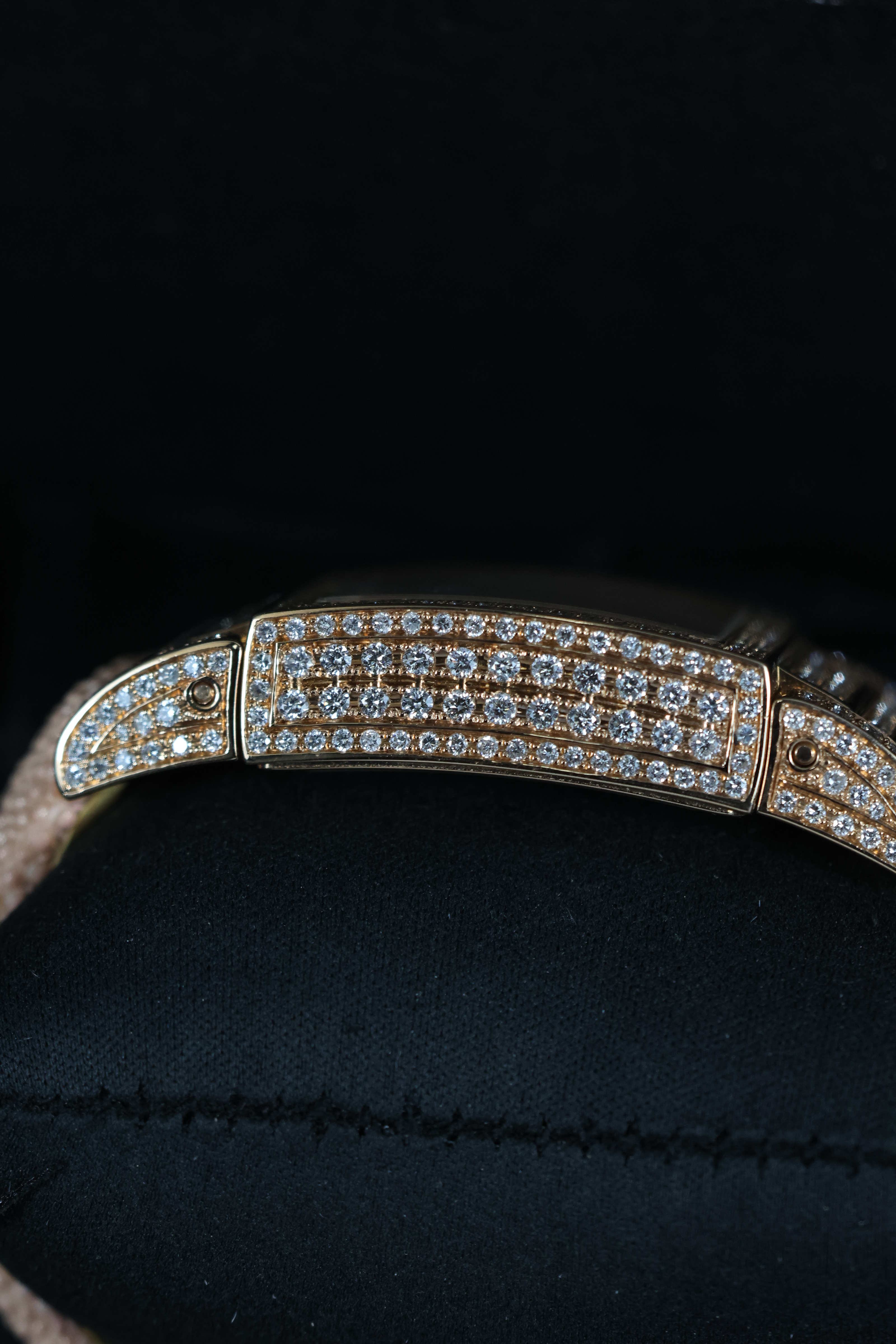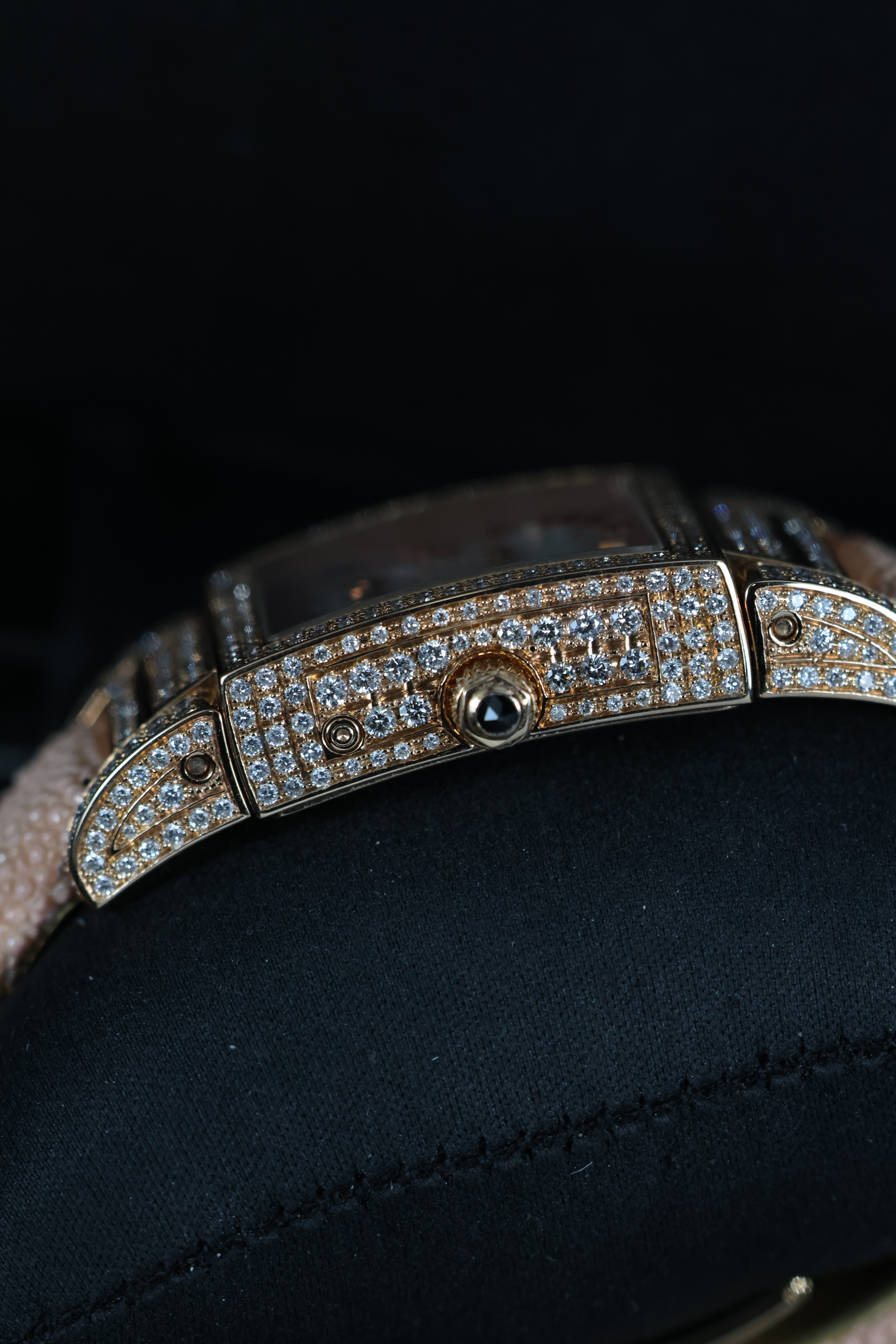Корпус этих часов изготовлен из розового золота, что придает им особую изысканность и элегантность. Бриллианты, встроенные в корпус, добавляют часам дополнительный блеск и роскошь. Ремешок из натуральной кожи не только обеспечивает комфортное ношение, но и подчеркивает статусность владельца.