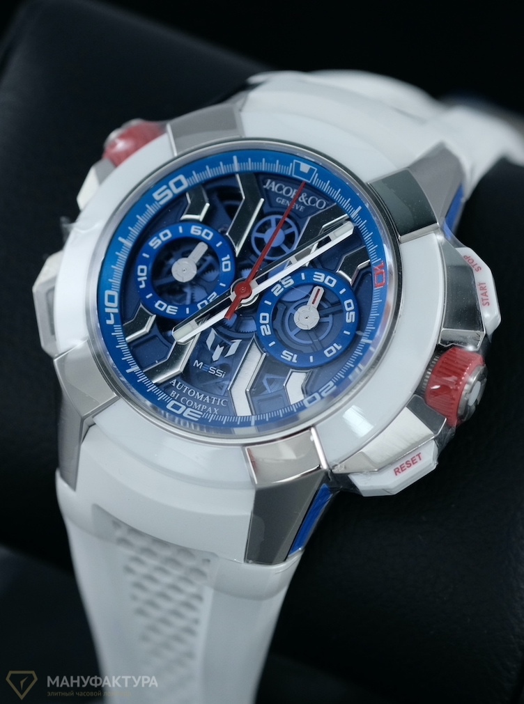 В мире часов и ювелирных изделий есть бренды, которые не просто создают изделия, а воплощают в них искусство и мастерство. Одним из таких брендов является Jacob & Co, известный своими уникальными и стильными часами. Именно от этого бренда мы предлагаем вам уникальный экземпляр - Epic X Chrono Messi Titanium.
