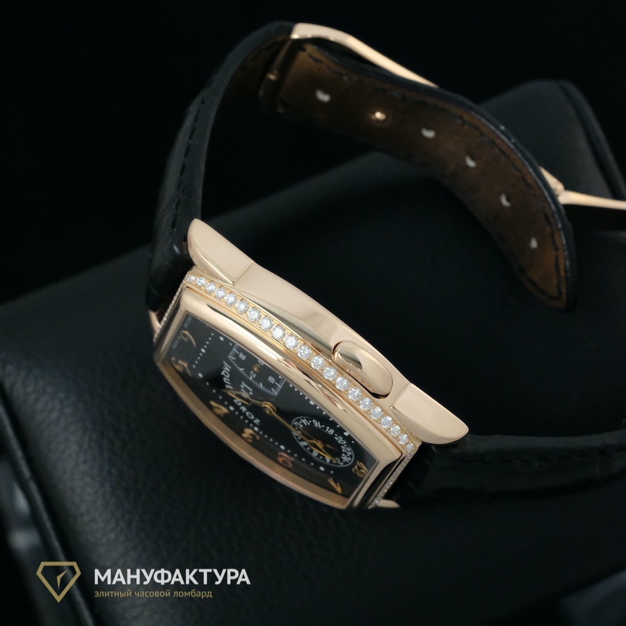 Эти часы – настоящий шедевр, выполненный из розового золота и украшенный бриллиантами, что придает им неповторимый блеск и изящество. Сапфировое стекло обеспечивает идеальную видимость циферблата, а ручной завод подчеркивает мастерство швейцарских часовщиков.