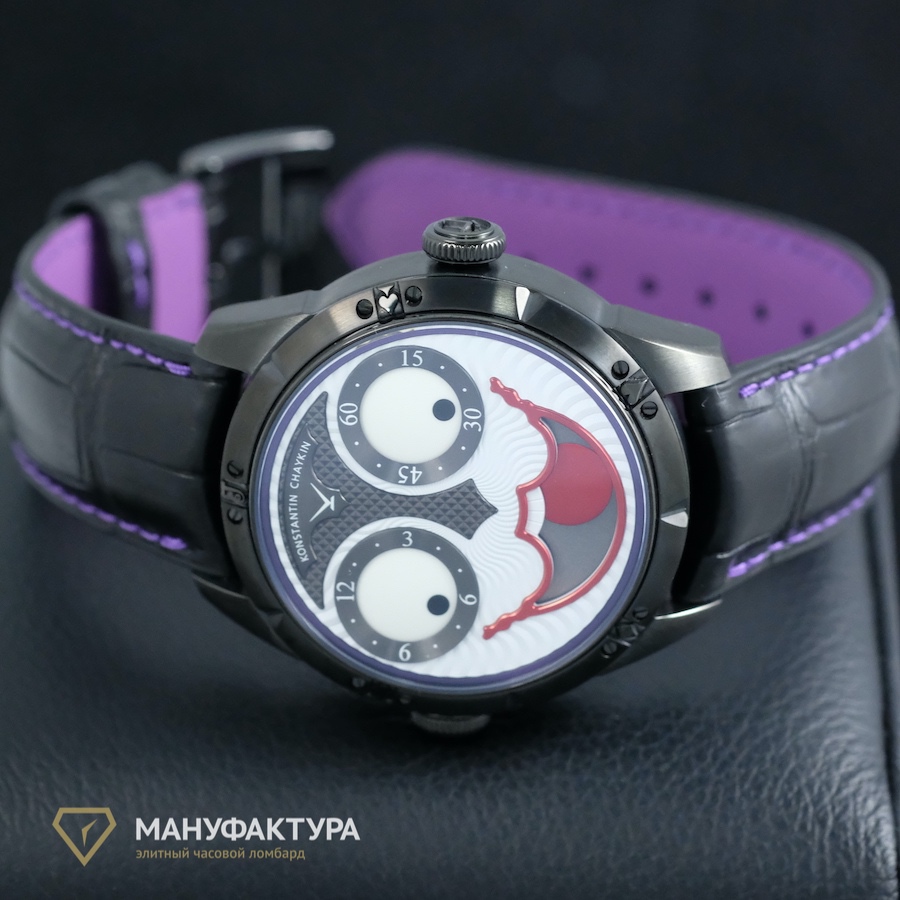 Вашему вниманию предлагается эксклюзивный шедевр часового искусства - часы Joker Black Bet от известного бренда Константин Чайкин (Konstantin Chaikin). Эти мужские часы размером 42 мм, выполненные из высококачественного материала корпуса PVD, поражают своей изысканностью и стилем. Ремешок из натуральной кожи добавляет им дополнительный шарм и элегантность.