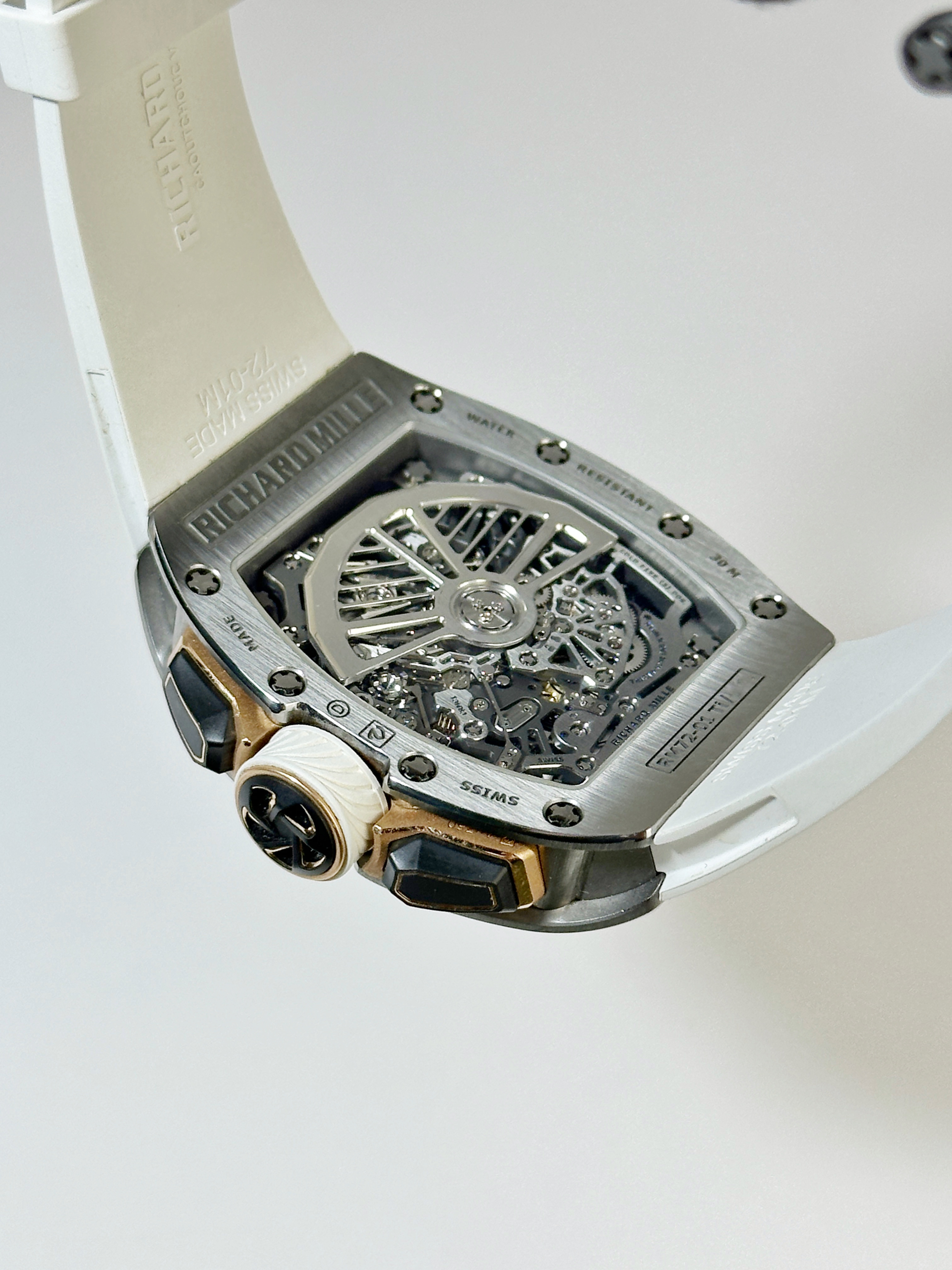 Одной из ключевых особенностей модели RM72-01 является наличие механизма с автоподзаводом, что обеспечивает длительную работу без необходимости в ручном заводе. Кроме того, часы оснащены функцией Flyback-хронографа, позволяющей мгновенно сбрасывать и перезапускать хронограф, а также функцией отображения даты. Все это делает эти часы не только стильным аксессуаром, но и полезным инструментом для тех, кто ценит точность и функциональность.