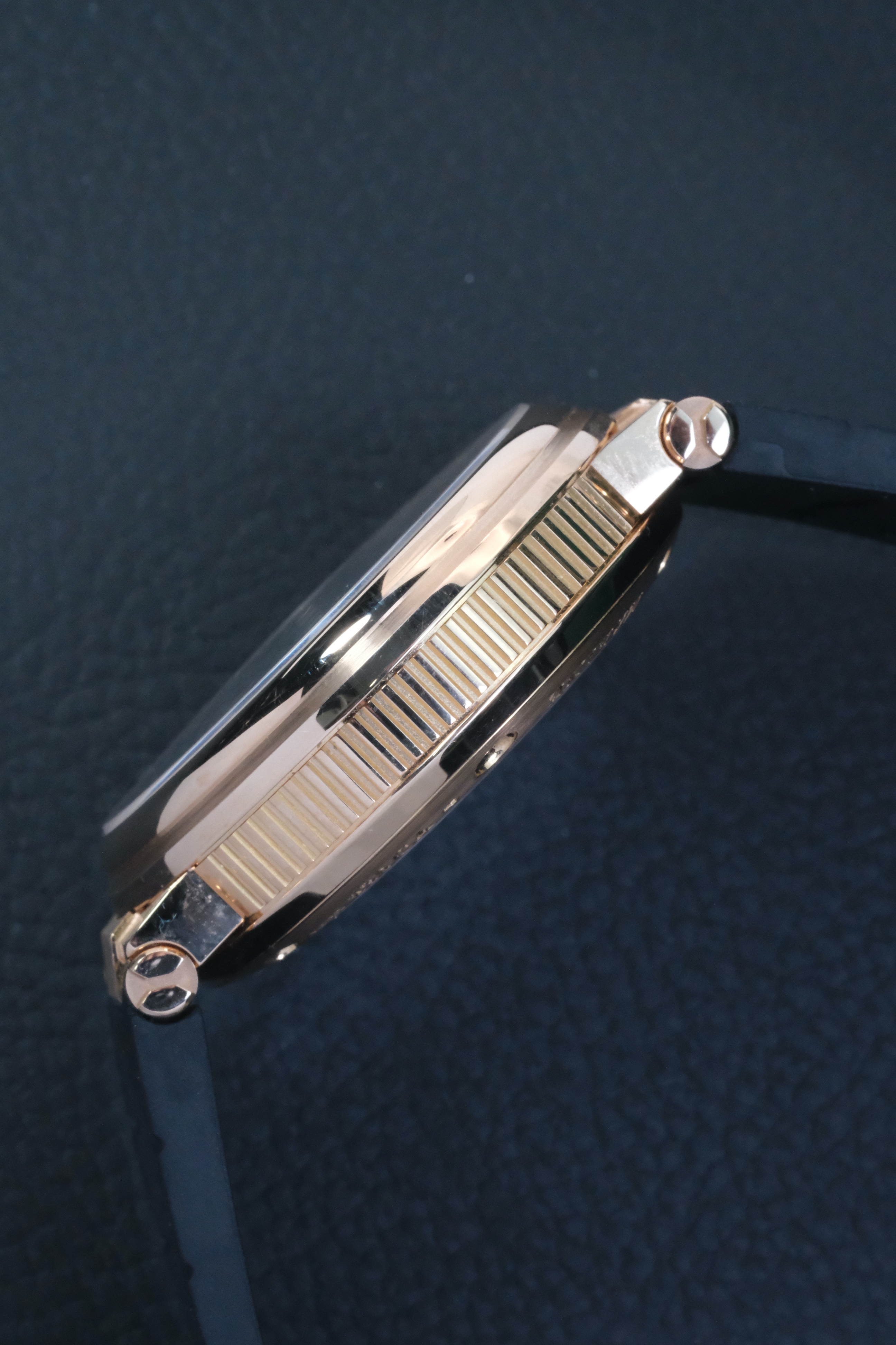 Корпус из розового золота придает часам особую изысканность и роскошь, а каучуковый ремешок обеспечивает комфорт и удобство в носке. Сапфировое стекло не только защищает механизм от повреждений, но и позволяет насладиться его изяществом.