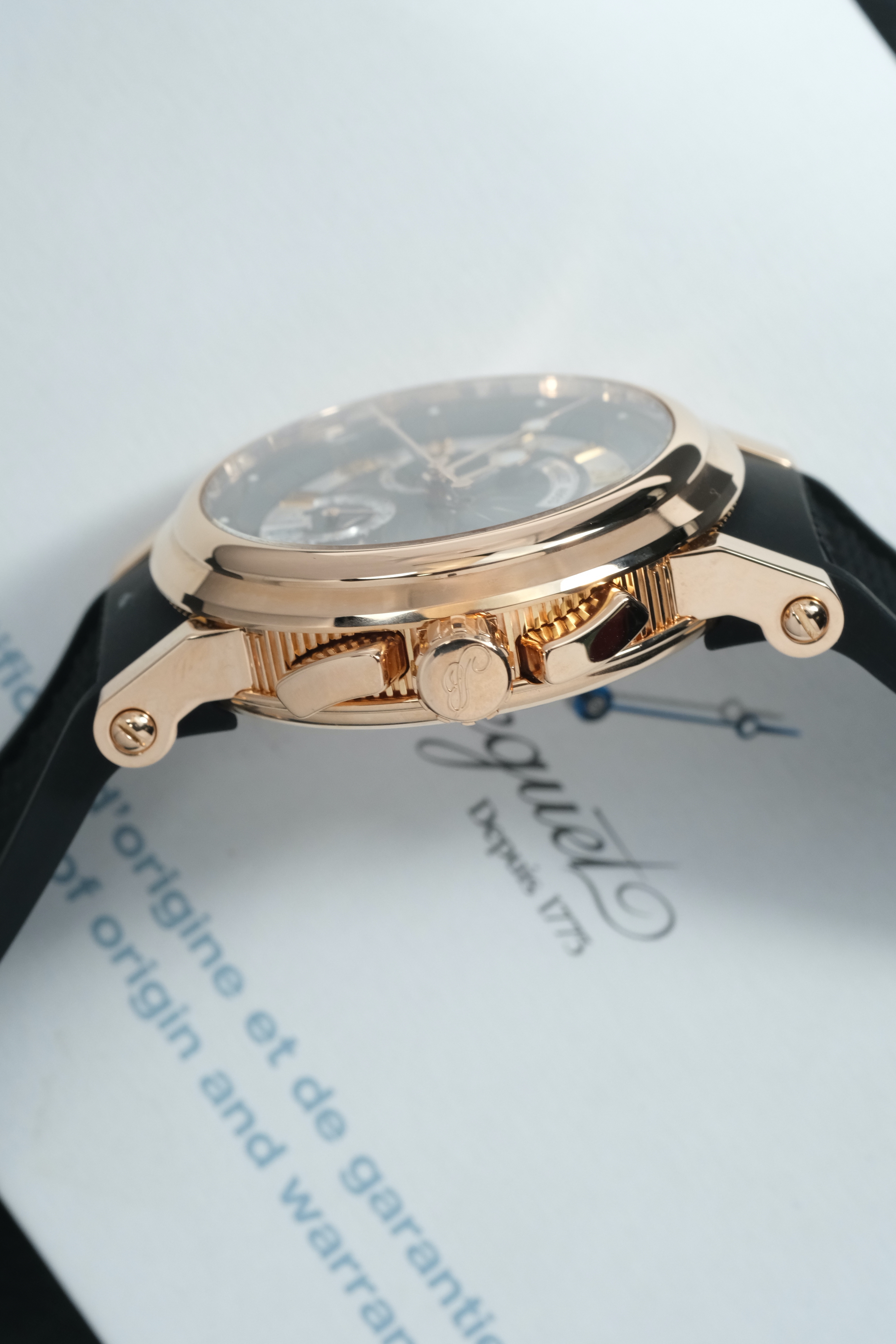 Каждые часы Breguet Marine Chronograph Rose Gold, представленные в нашем салоне, находятся в идеальном состоянии и сопровождаются документами, подтверждающими их подлинность. Мы гарантируем качество и надежность наших часов, предлагая 1-годичную гарантию. Запас хода до 48 часов и калибр 583 Q/1 делают их еще более привлекательными для тех, кто ищет часы, которые не только выглядят великолепно, но и обладают высокими техническими характеристиками.