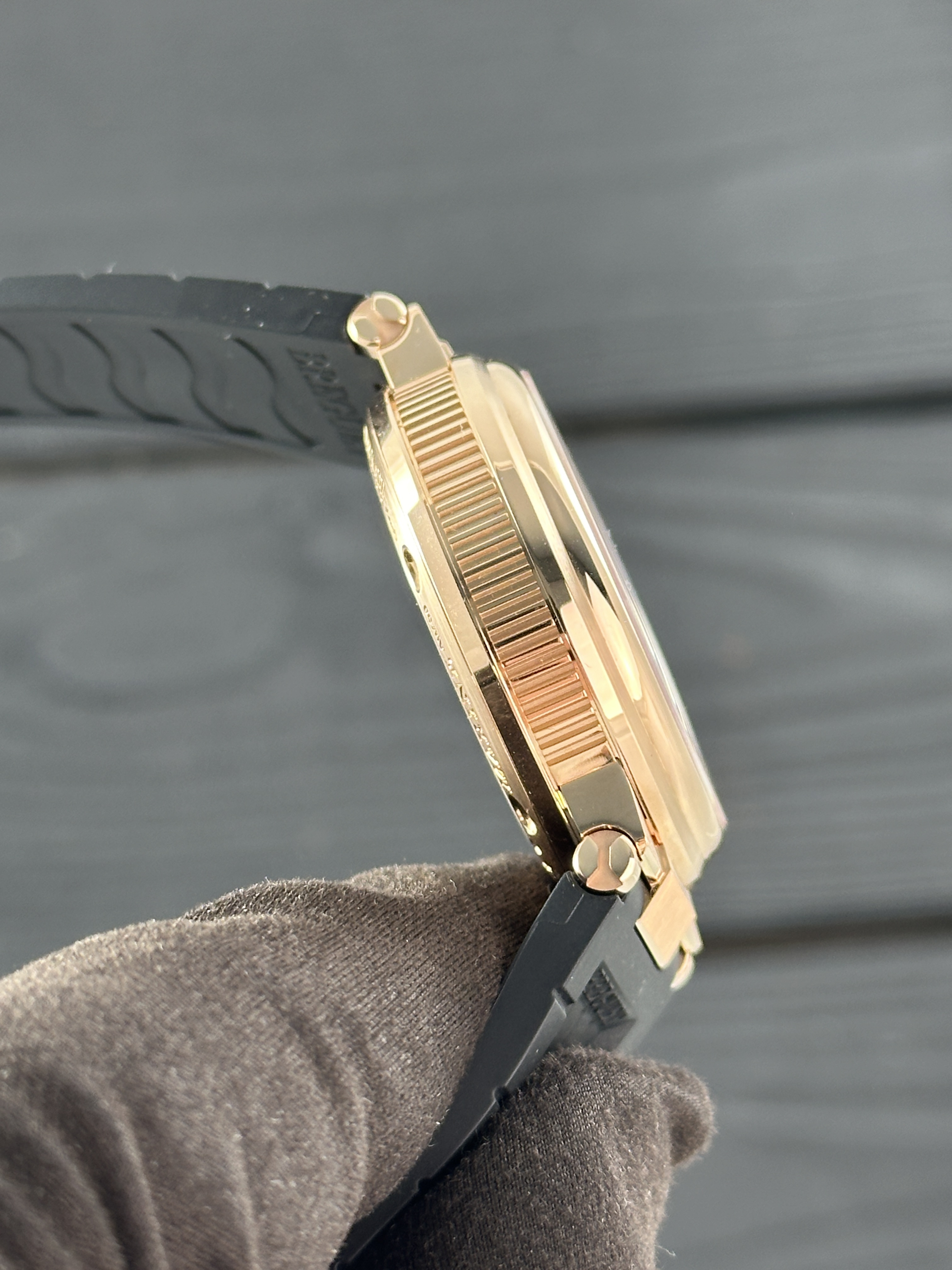 Созданные в 2023 году, эти часы являются воплощением современного стиля и классического шарма. Их корпус, изготовленный из розового золота, не только придает изделию роскошный вид, но и обеспечивает долговечность и устойчивость к коррозии. Сапфировое стекло, защищающее механизм от повреждений, добавляет еще больше прочности и обеспечивает отличную видимость деталей.