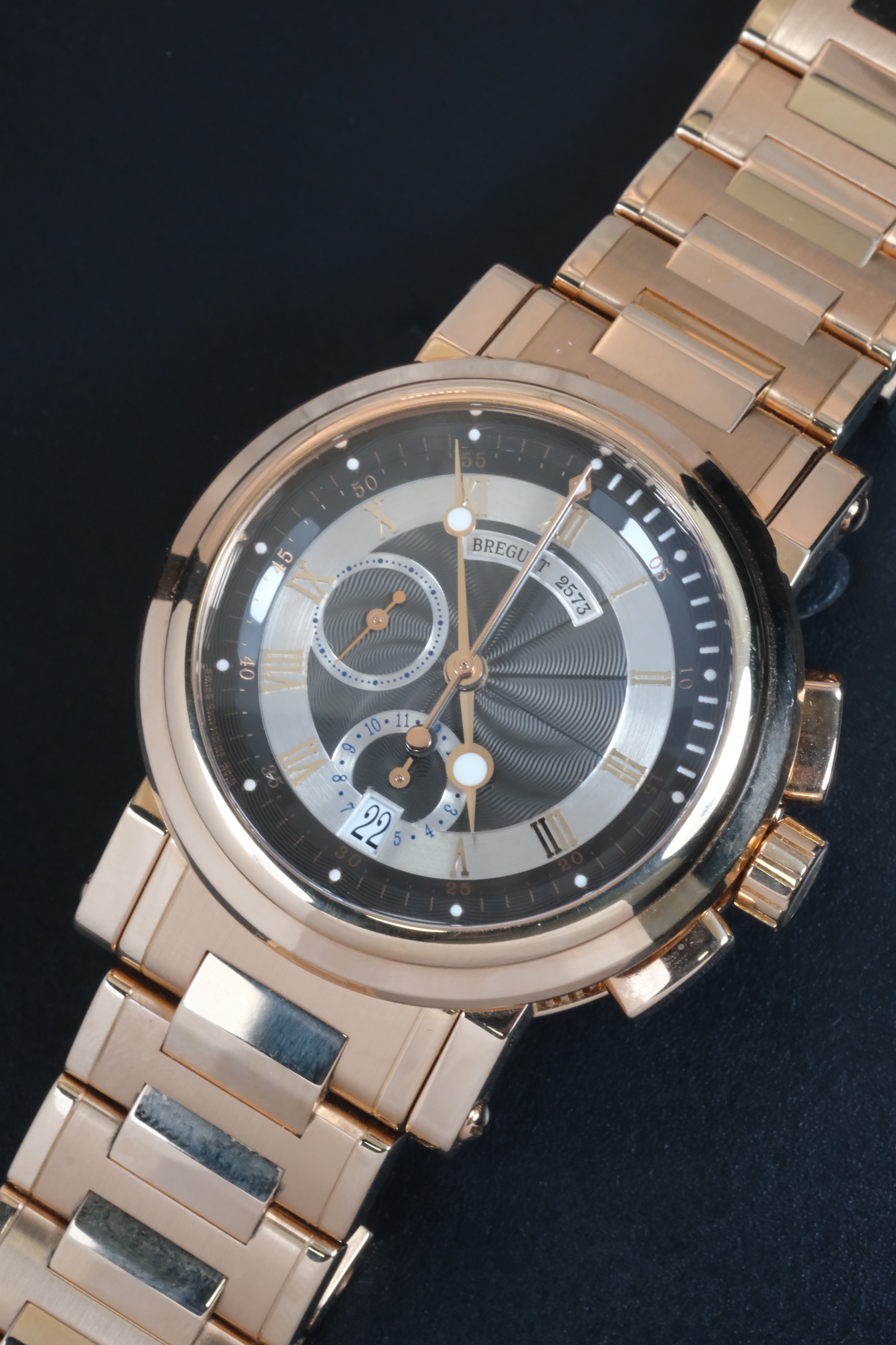 Каждые часы Breguet Marine Chronograph Rose Gold, представленные в нашем салоне, находятся в идеальном состоянии и сопровождаются документами, подтверждающими их подлинность. Мы гарантируем качество и надежность наших часов, предлагая 1-годичную гарантию. Запас хода до 48 часов и калибр 583 Q/1 делают их еще более привлекательными для тех, кто ищет часы, которые не только выглядят великолепно, но и обладают высокими техническими характеристиками.