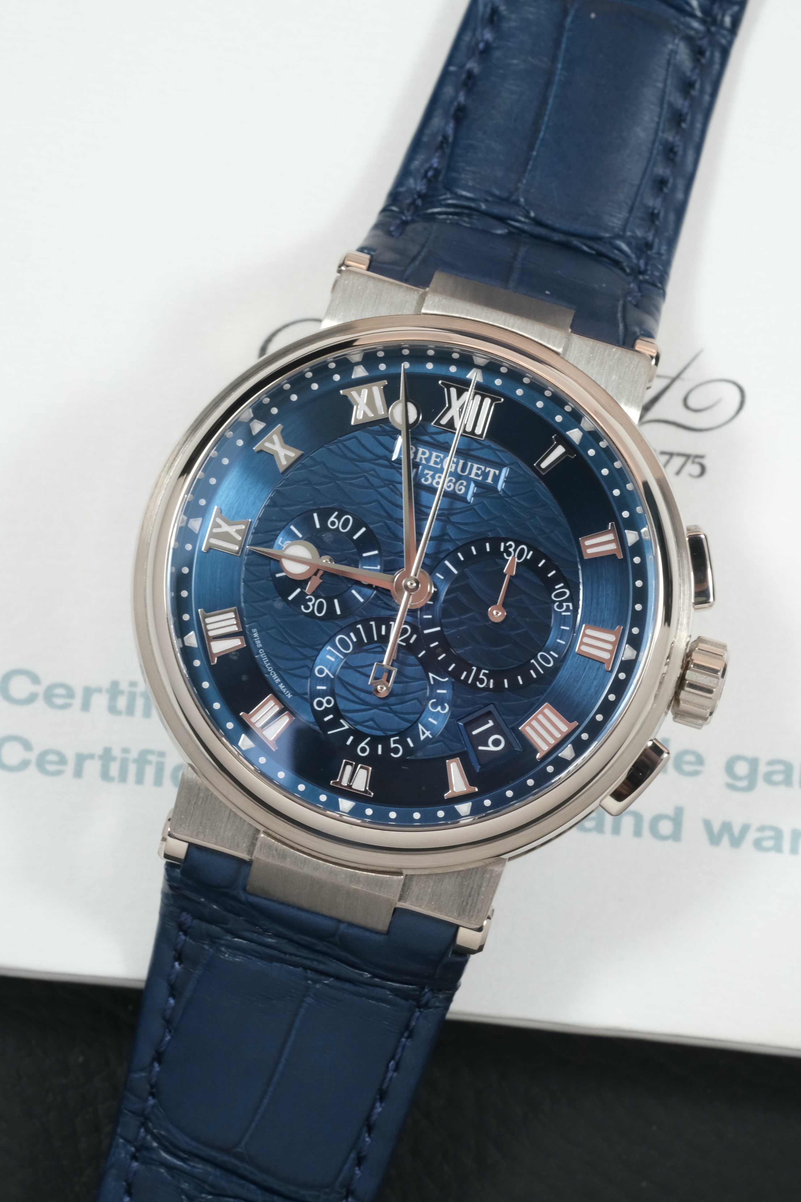 В мире часов и ювелирных изделий есть бренды, которые символизируют высший уровень мастерства и изысканности. Одним из таких брендов является Breguet, известный своими шедеврами, которые поражают своей красотой и точностью. Именно в этом контексте мы хотим представить вашему вниманию часы Marine Chronograph White Gold Blue Dial, которые являются настоящим произведением искусства.