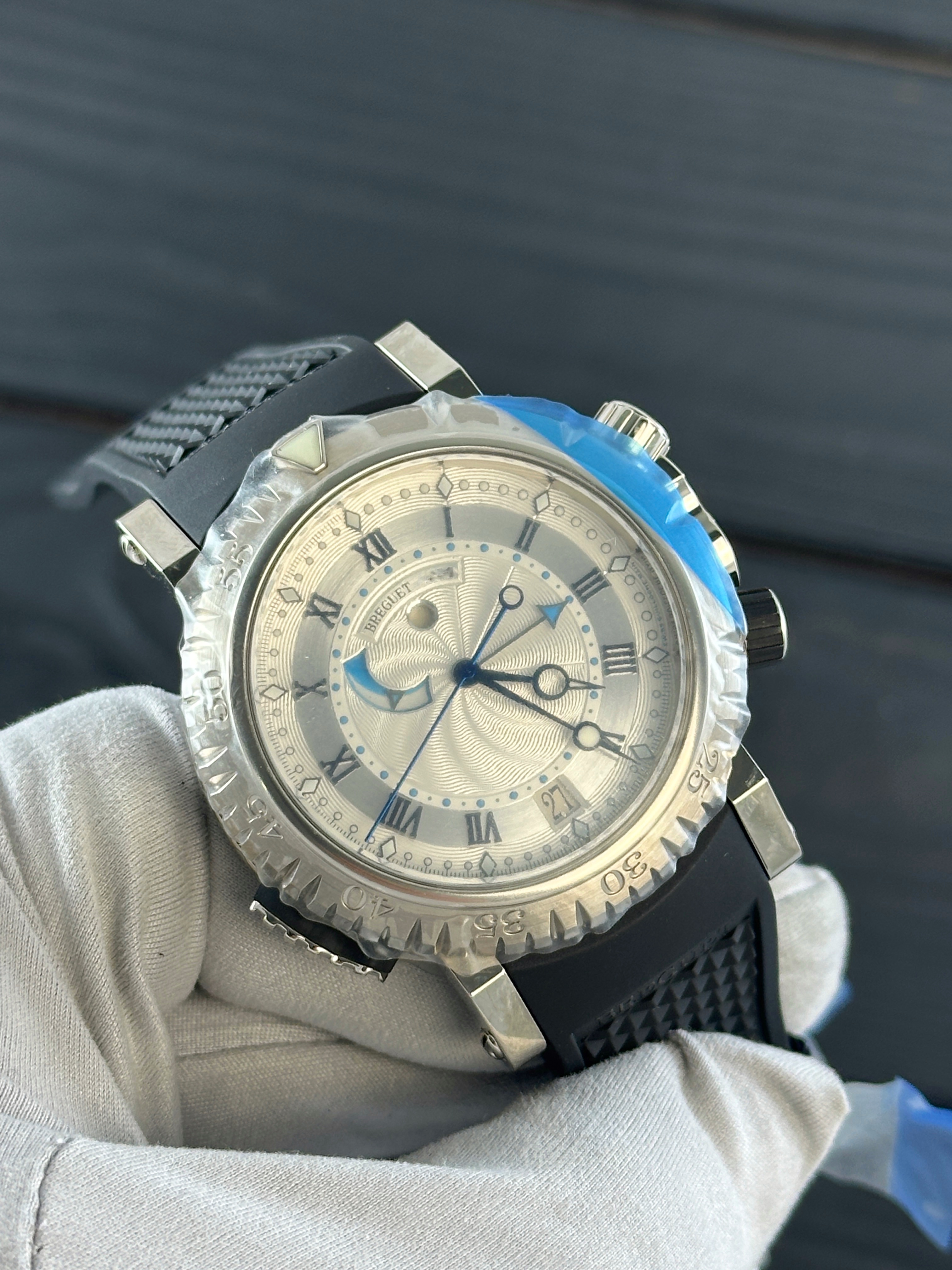 Каждые часы Breguet Marine Royale White Gold, представленные в нашем салоне, проходят тщательную предпродажную подготовку, чтобы гарантировать их идеальное состояние. Мы также предоставляем полный комплект документов, подтверждающих подлинность и качество товара. Кроме того, вы получаете официальную гарантию на 1 год, что обеспечивает дополнительную уверенность в вашей покупке.