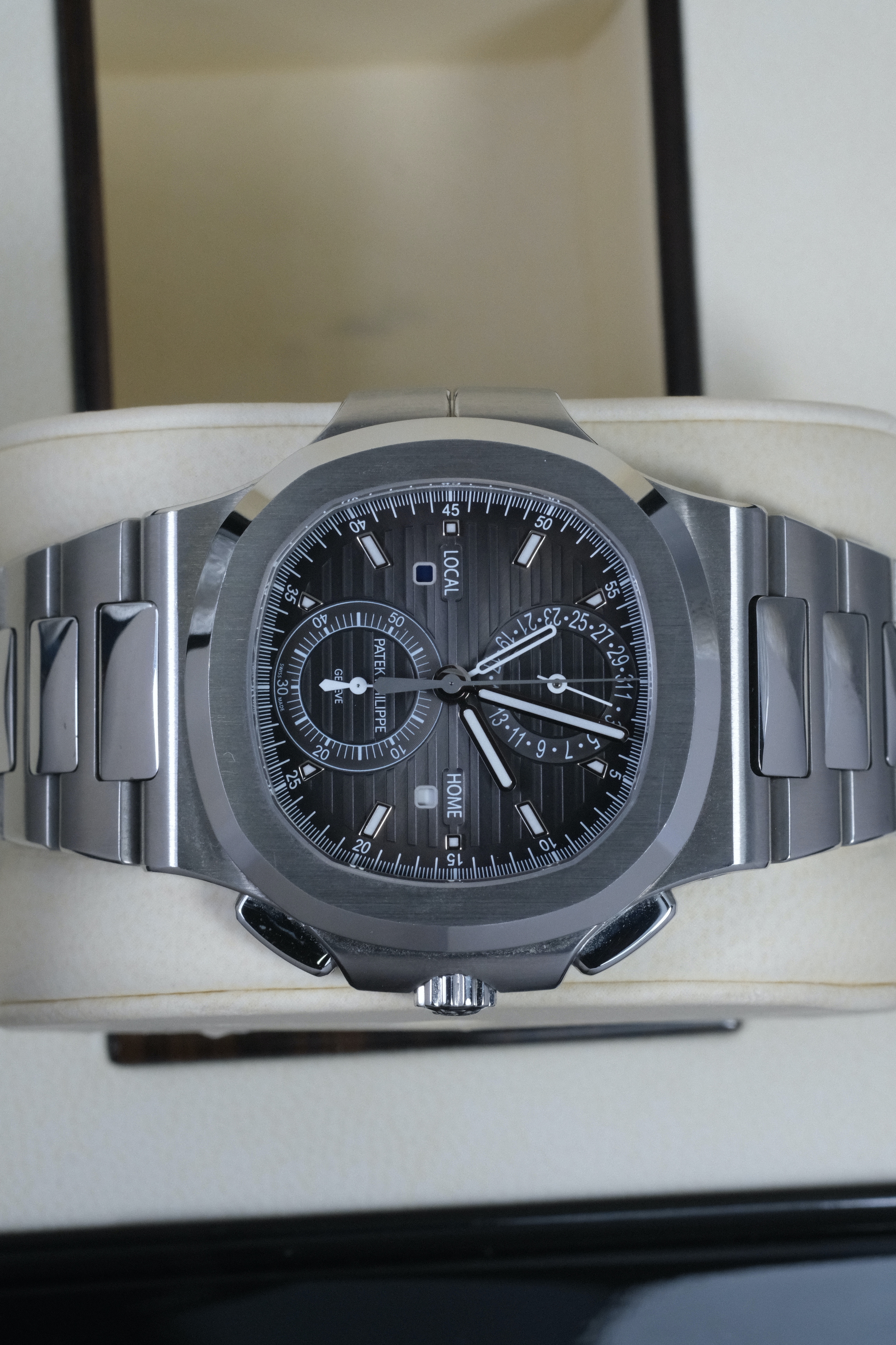 Patek Philippe Nautilus Travel Time Chronograph Ref 5990/1A-001 – это воплощение совершенства часового искусства. Модель сочетает в себе элегантный дизайн, характерный для линии Nautilus, и сложные механизмы, гарантирующие точность и надежность. Корпус из нержавеющей стали, водонепроницаемость до 30 метров, сапфировое стекло и автоматический калибр CH 28-520 C FUS с функциями хронографа, двойного часового пояса и даты делают эти часы незаменимым спутником для требовательных путешественников и ценителей роскоши.