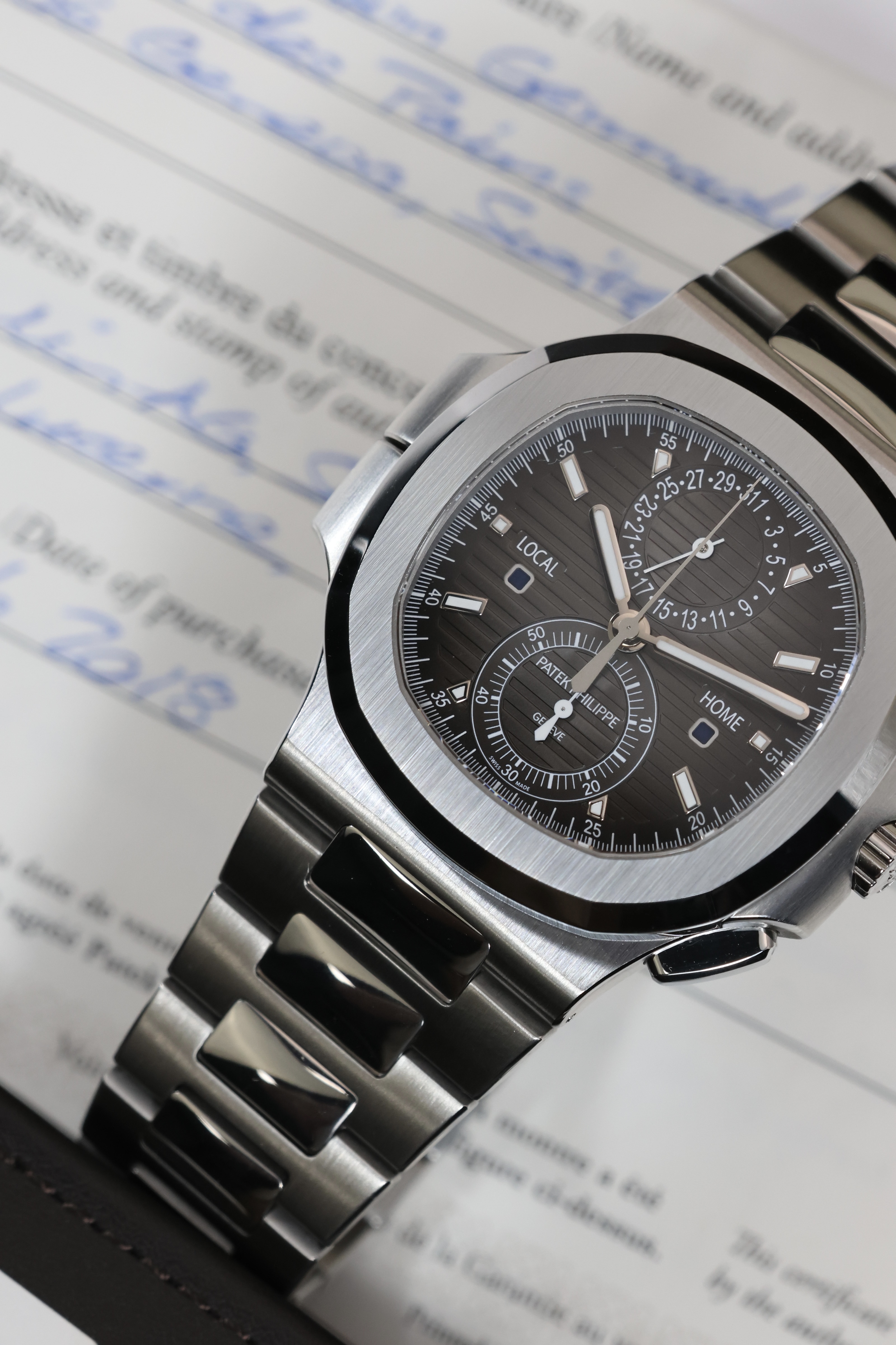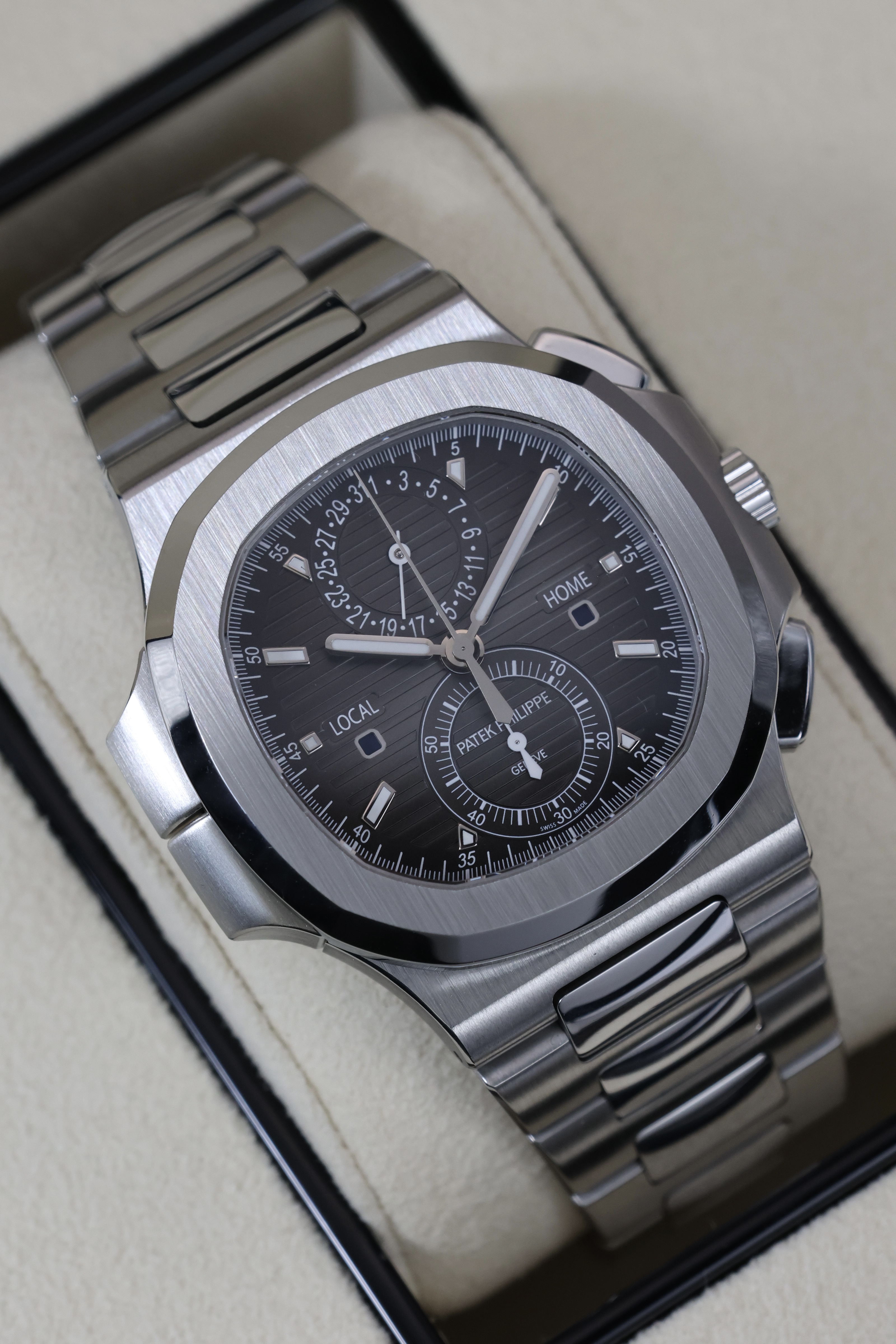 Приобретая часы Nautilus Travel Time Chronograph в часовом салоне «Мануфактура», вы получаете не только высококачественный товар, но и гарантию на один год, а также возможность воспользоваться выгодными бонусными программами. Салон предлагает удобные условия покупки, включая безопасность сделки и выгодные расценки.