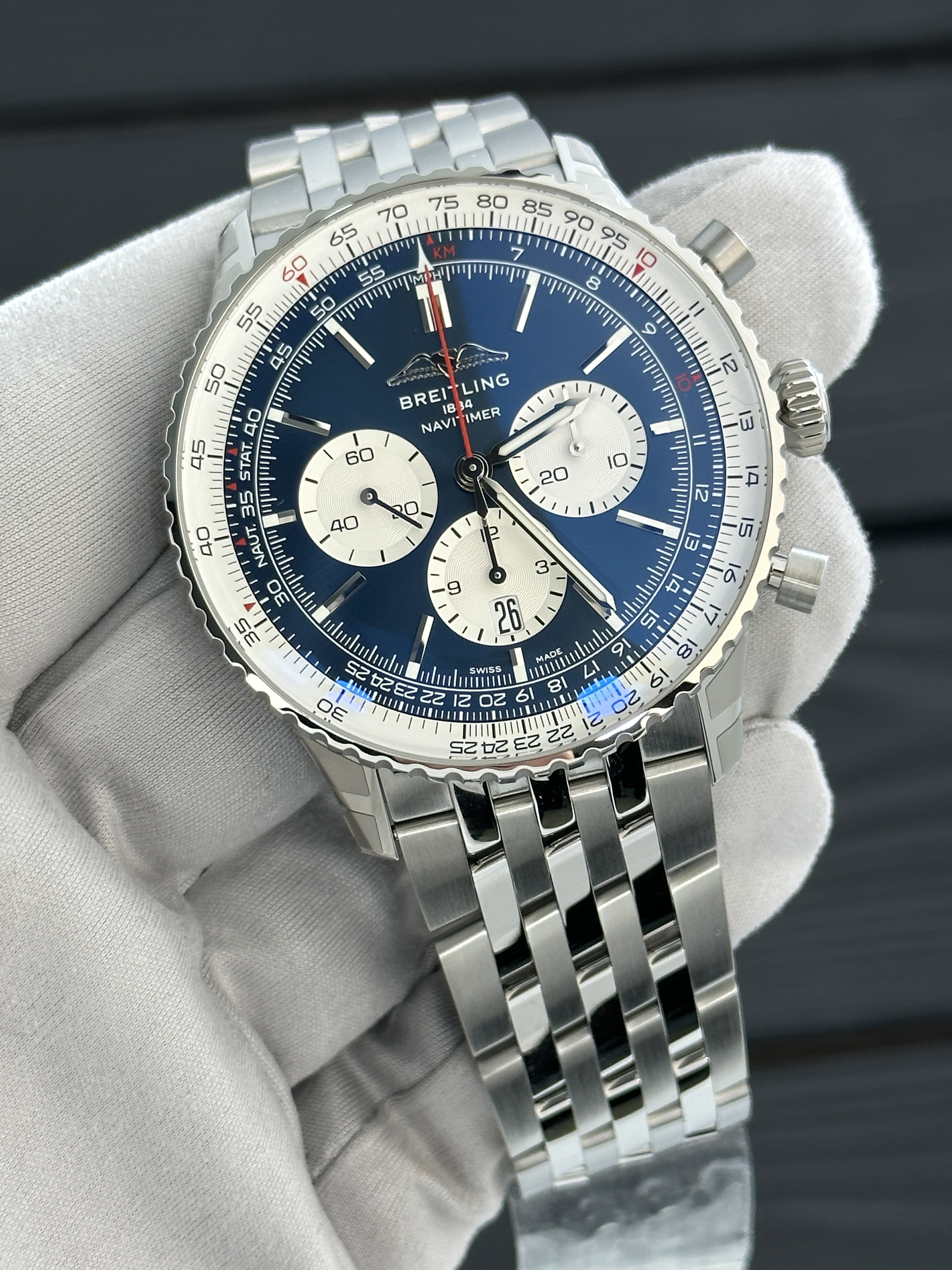 Каждые часы Breitling Navitimer B01 Chronograph 46, представленные в нашем салоне, проходят тщательную предпродажную подготовку и находятся в идеальном состоянии. Мы гарантируем безопасность сделки, предоставляя все необходимые документы. Кроме того, вы получите 5-летнюю гарантию на часы, что является подтверждением их высокого качества.