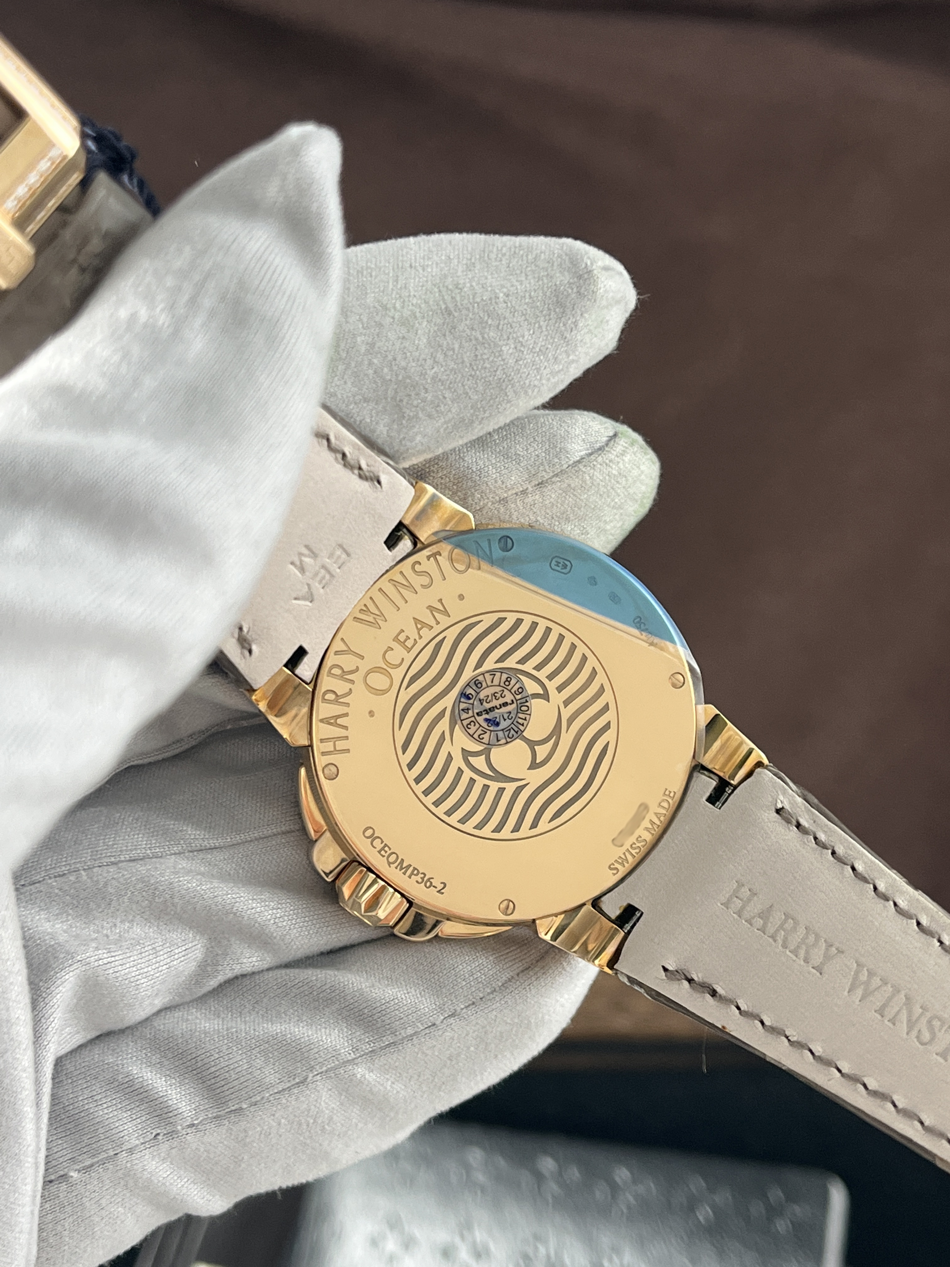 Представляем вашему вниманию часы Ocean Moon Phase 36 mm от бренда Harry Winston, которые являются настоящим шедевром ювелирного искусства. Эти часы не просто отображают время, они рассказывают историю о красоте и изяществе. Их корпус, выполненный из розового золота и украшенный бриллиантами, сияет на вашей руке, привлекая к себе внимание и восхищение.