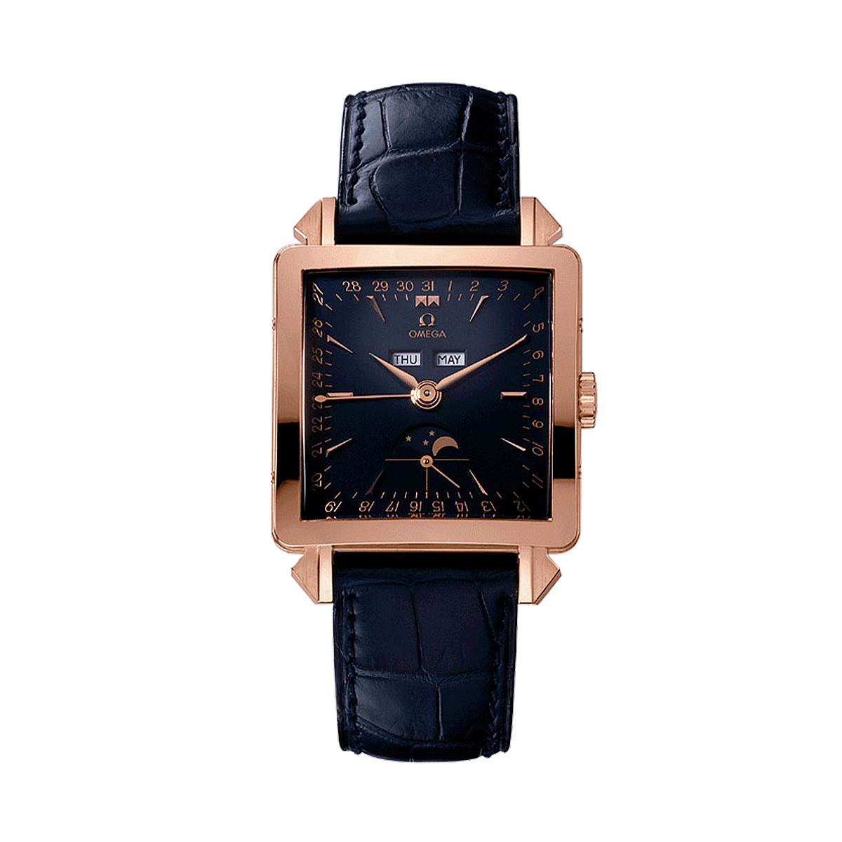 Оснащенные калибром Omega 2601, эти часы обладают автоподзаводом, показывают день недели, фазы луны и дату, что делает их не только красивыми, но и функциональными.