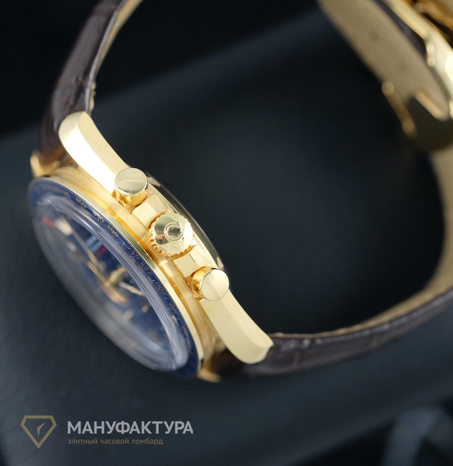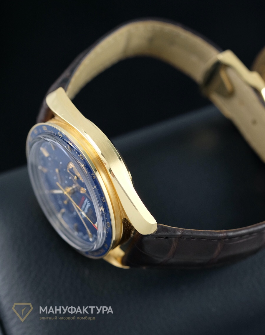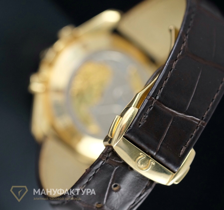 Корпус этих часов изготовлен из желтого золота, что придает им роскошный и элегантный вид. Размер корпуса составляет 42 мм, что делает его идеальным для мужской руки. Ремешок из натуральной кожи добавляет изделию дополнительный шарм и комфорт в носке.