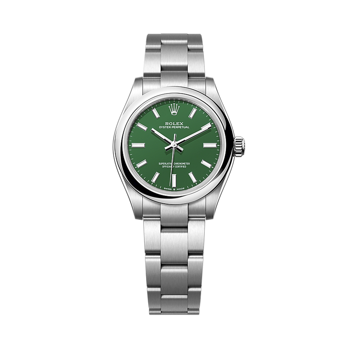 Часы Oyster Perpetual 31mm Green Dial выполнены из высококачественной нержавеющей стали, что обеспечивает им долговечность и устойчивость к коррозии. Размер корпуса составляет всего 31 мм, что делает их идеальными для женских запястий. Браслет, выполненный из той же стали, гарантирует комфортное ношение и обеспечивает надежную фиксацию на запястье.