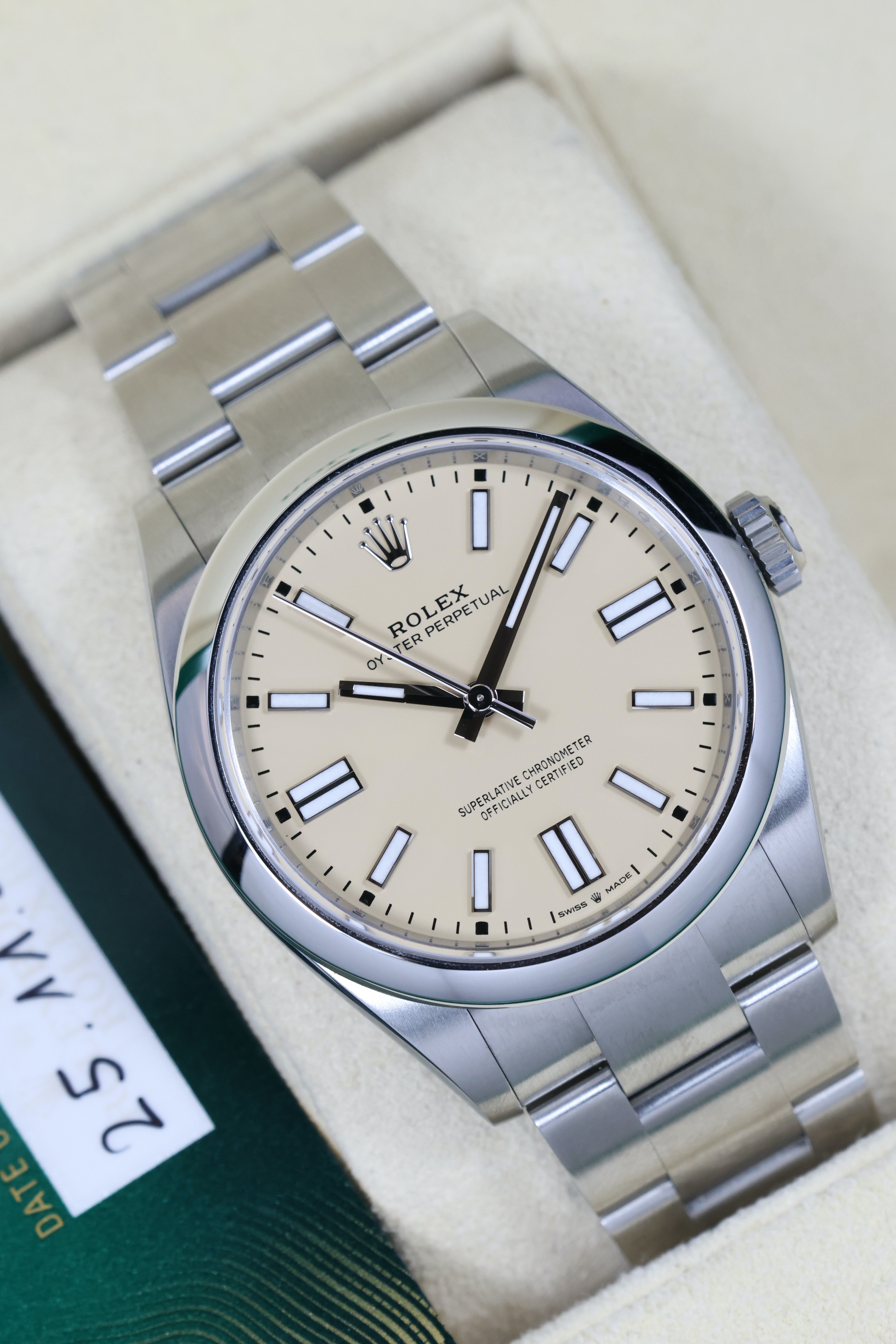 Приобретая часы Oyster Perpetual 41 mm Green Dial в нашем салоне, вы получаете не только качественный продукт, но и полный набор документов, подтверждающих их подлинность, а также оригинальную коробку. Кроме того, наши часы проходят тщательную предпродажную подготовку, что гарантирует их идеальное состояние.